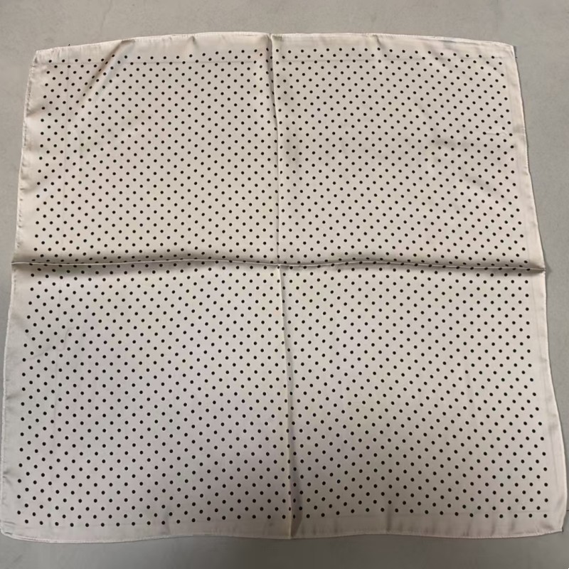 • 폴카 도트 베이지 실크 스퀘어 스카프