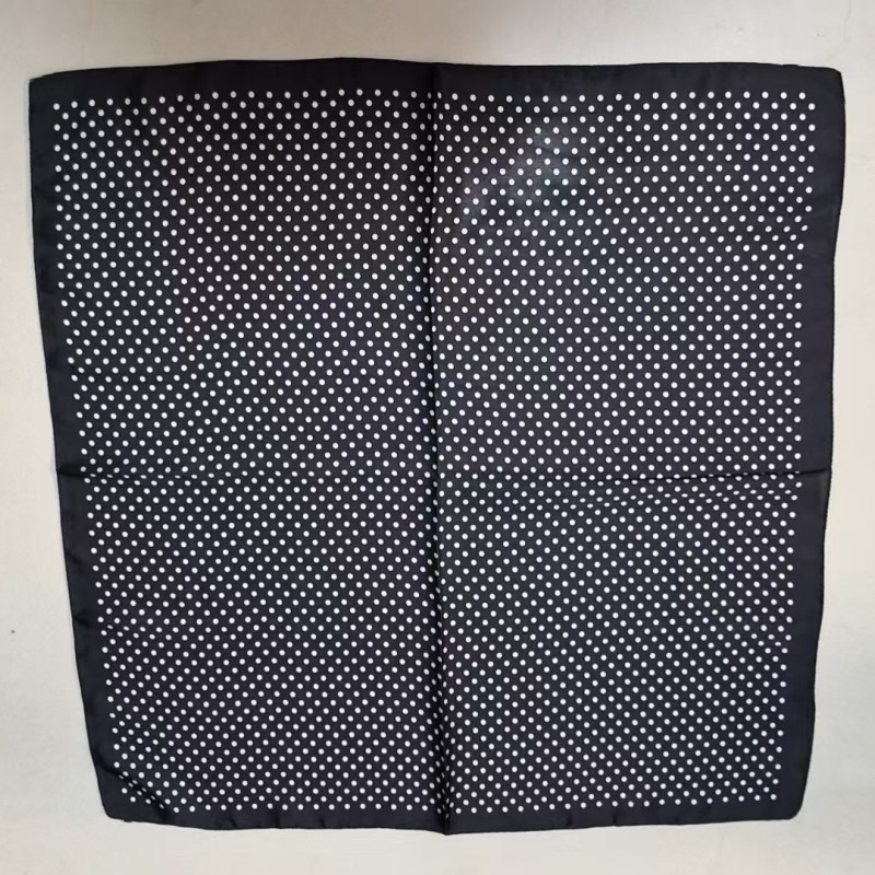 • 폴카 도트 블랙 실크 스퀘어 스카프