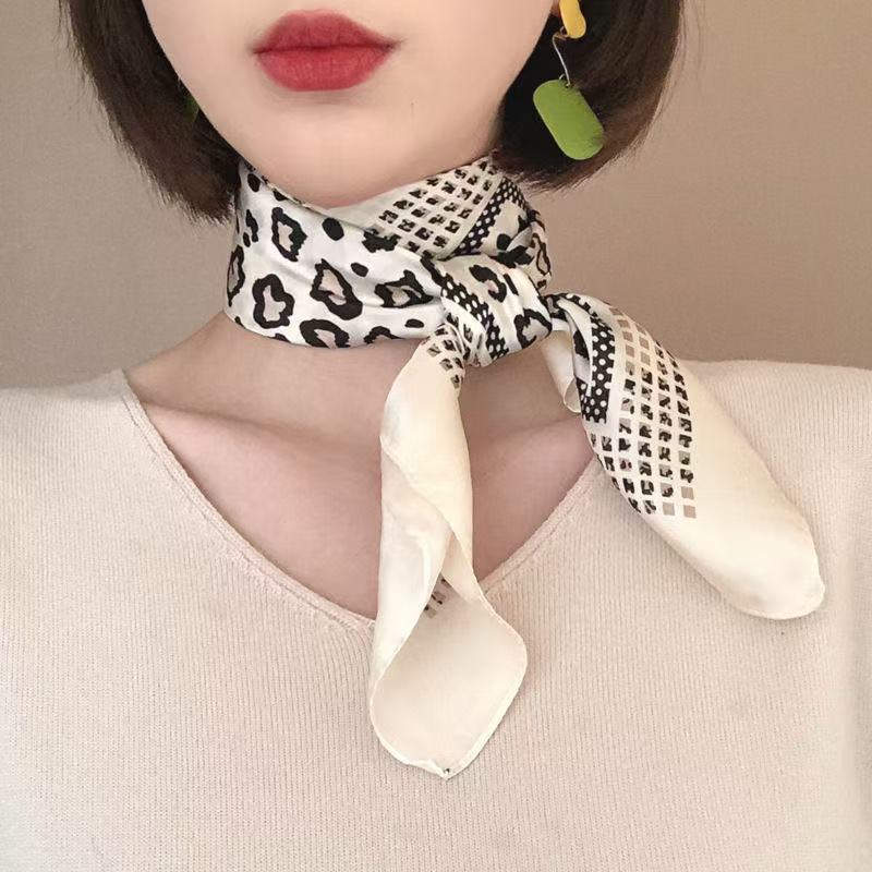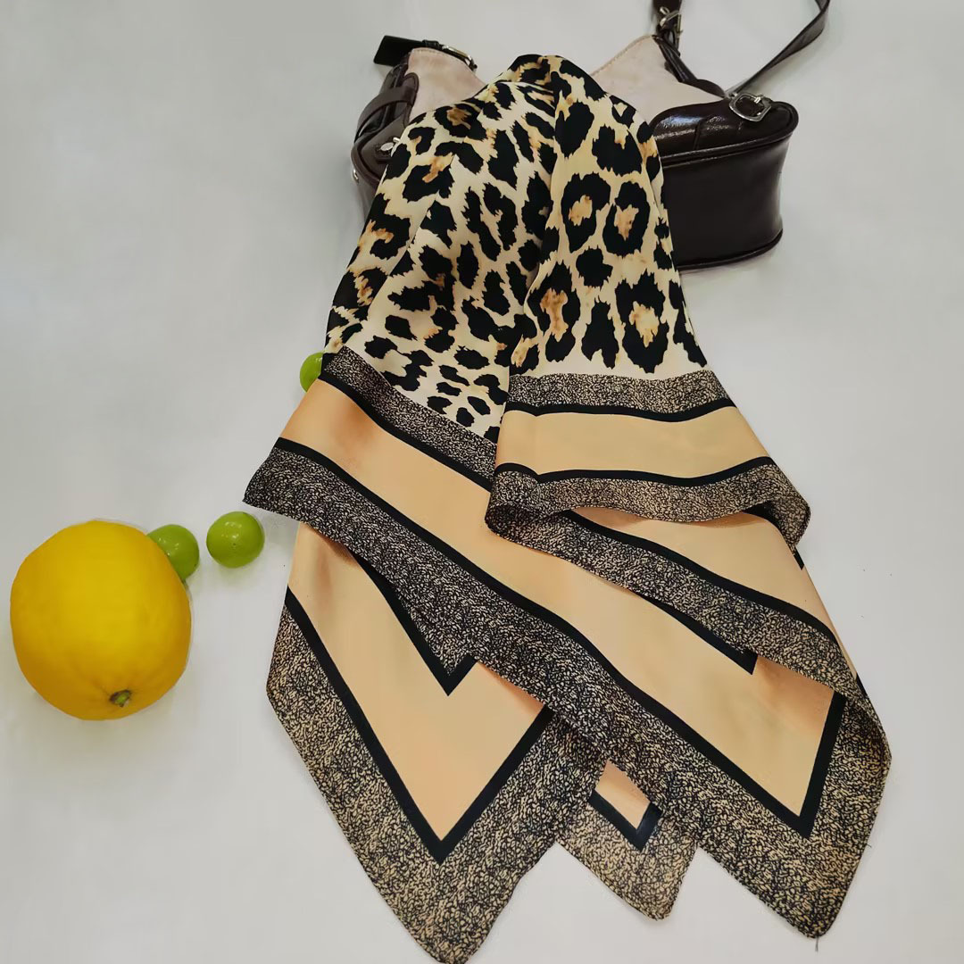 한국 캐슈넛 스카프 여성 스카프 레오파드 프린트 실크 스카프 시뮬레이션 실크 스카프 우아하고 패셔너블한 사계절 크로스보더 프린트 스카프