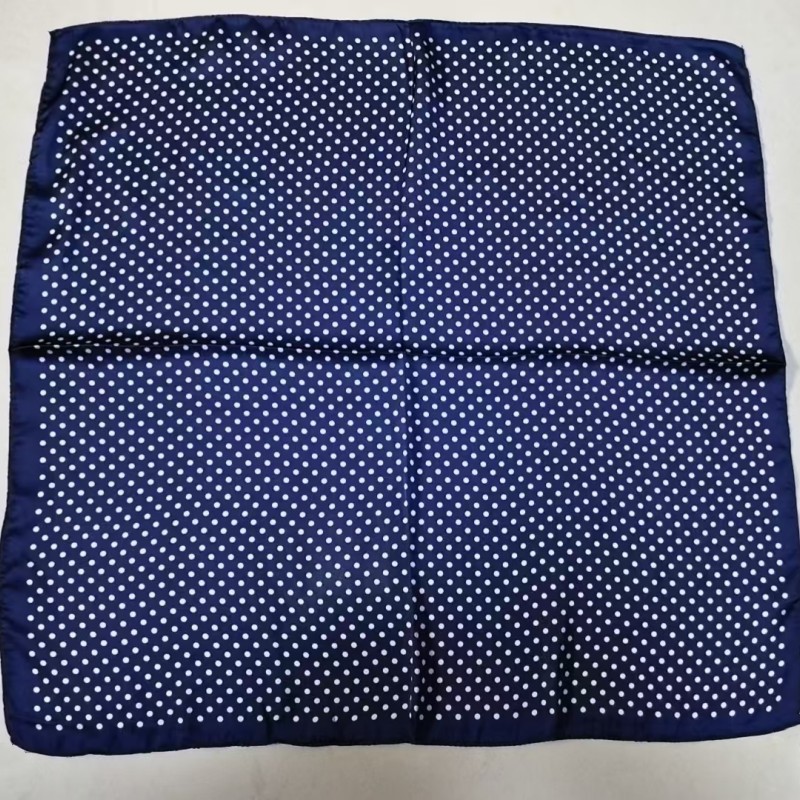 • 폴카 도트 네이비 블루 실크 스퀘어 스카프