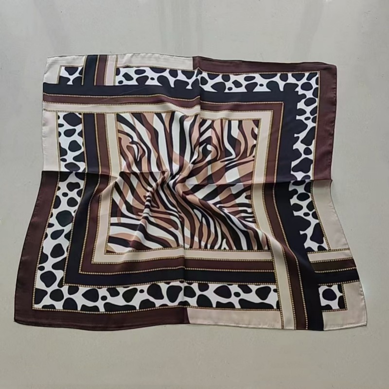 • 얼룩말 표범 무늬 카드 컬러 실크 스카프 스퀘어 스카프