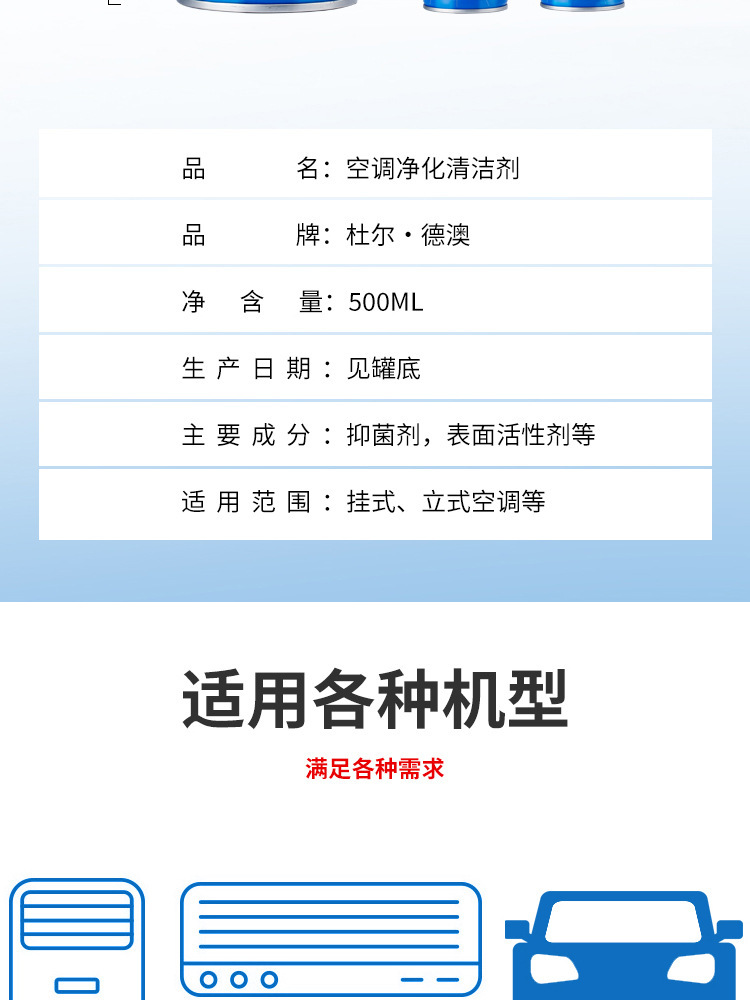 Duldeao 에어컨 세척제 가정용 교수형 캐비닛 자동차 세척제 분해 없이 강력한 오염 제거 및 냄새 제거