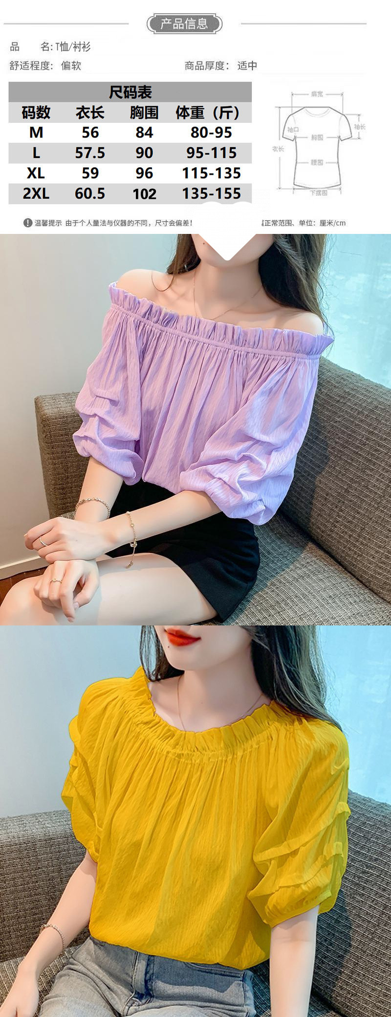 2025년 여름 여성을 위한 반팔 배 커버 쉬폰/폴리에스터 셔츠 새로운 스타일의 쇄골 프렌치 스타일스토어 가기