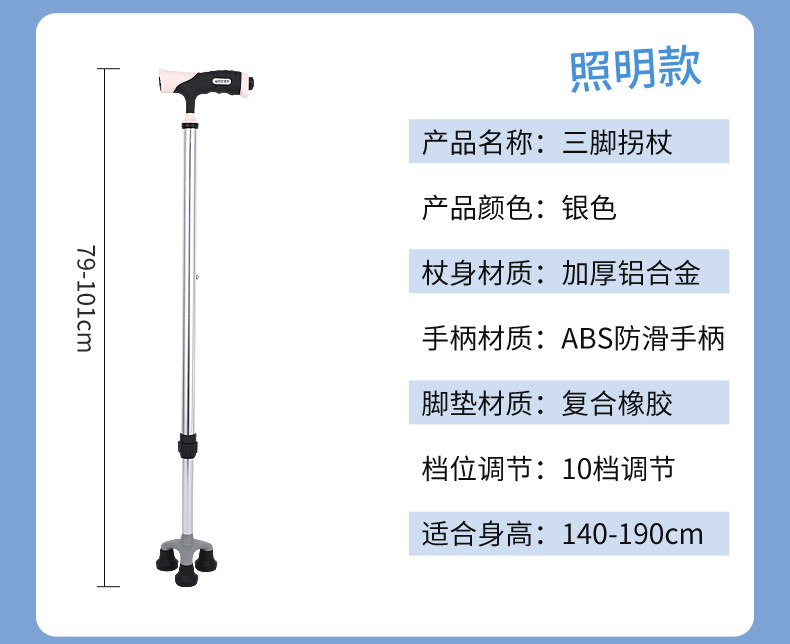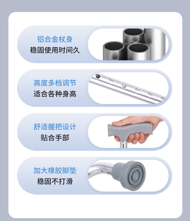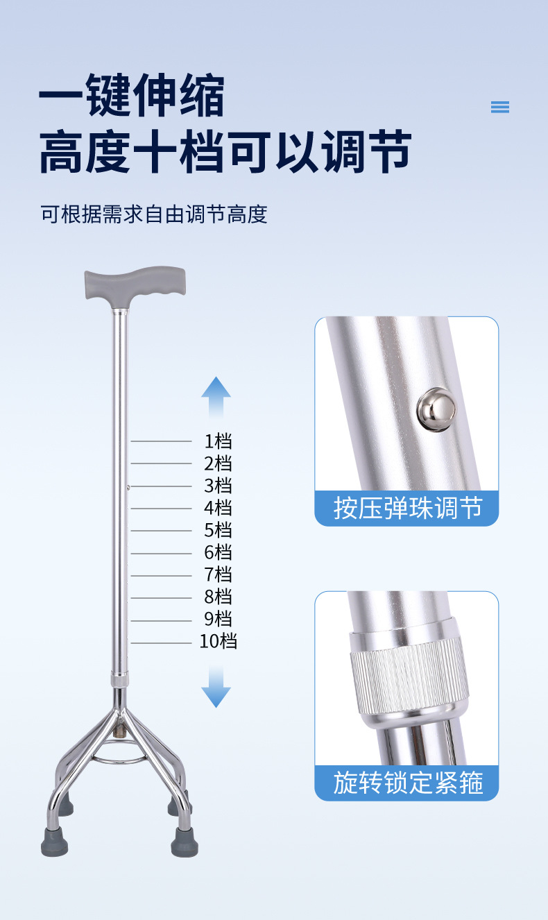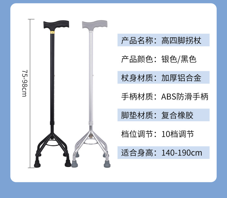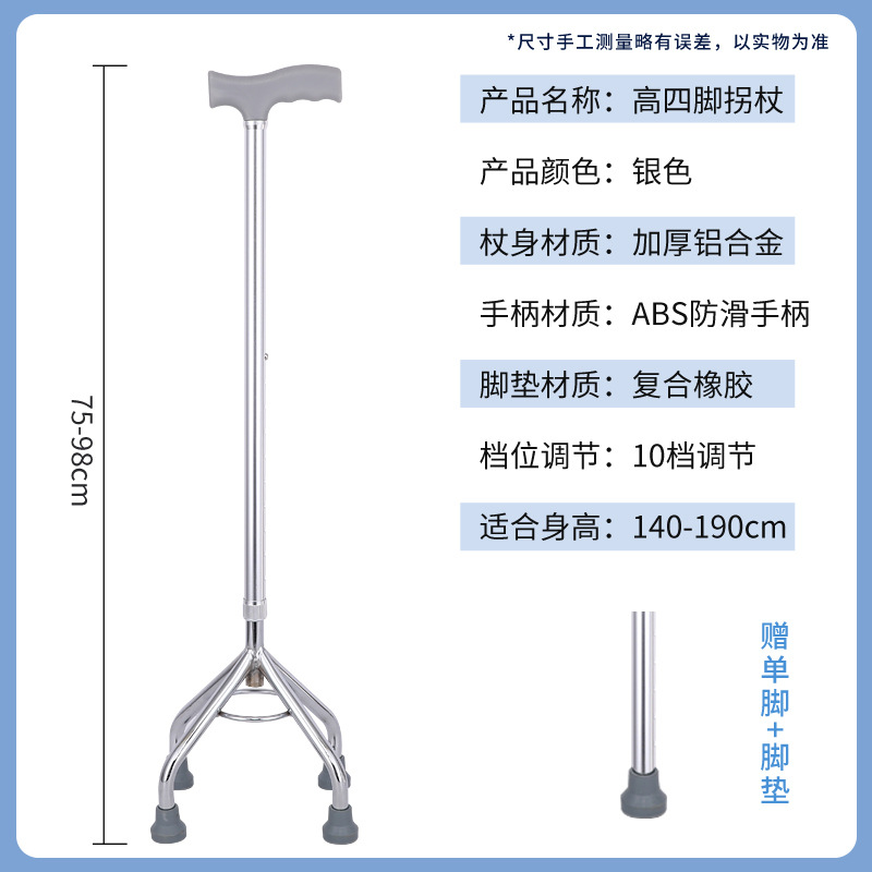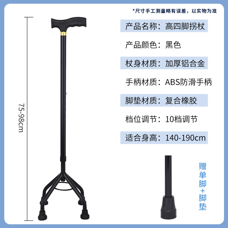 노인 보행 보조용 지팡이, 미끄럼 방지 지팡이, 골절 환자 재활을 위한 3족 지팡이 및 4족 지팡이, 경량 4족 지팡이
