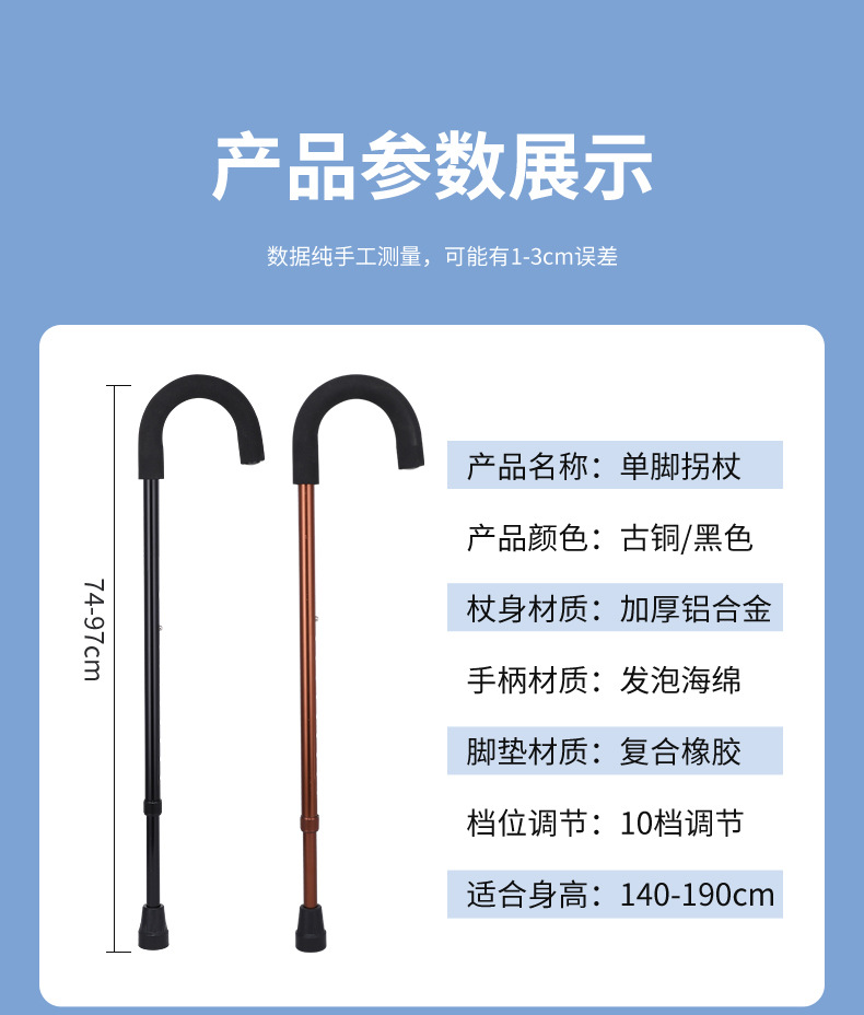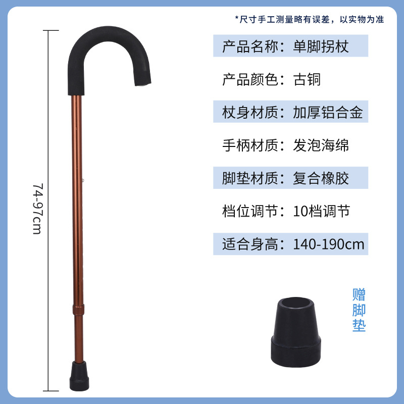 • 청동 곡선 손잡이 단일 다리 지팡이