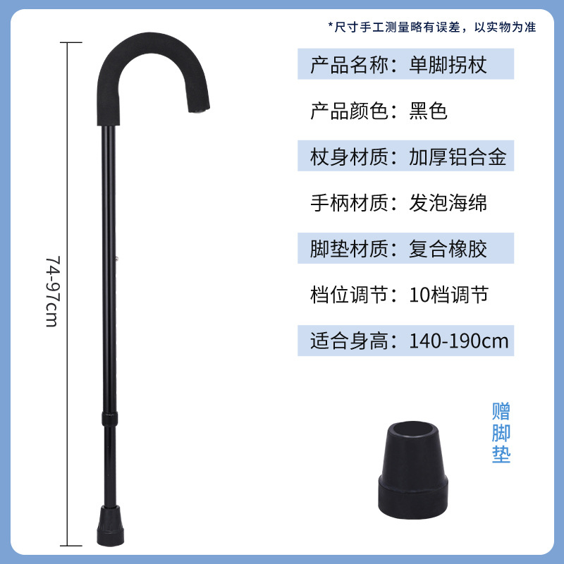 • 검은색 곡선 손잡이 단일 다리 지팡이