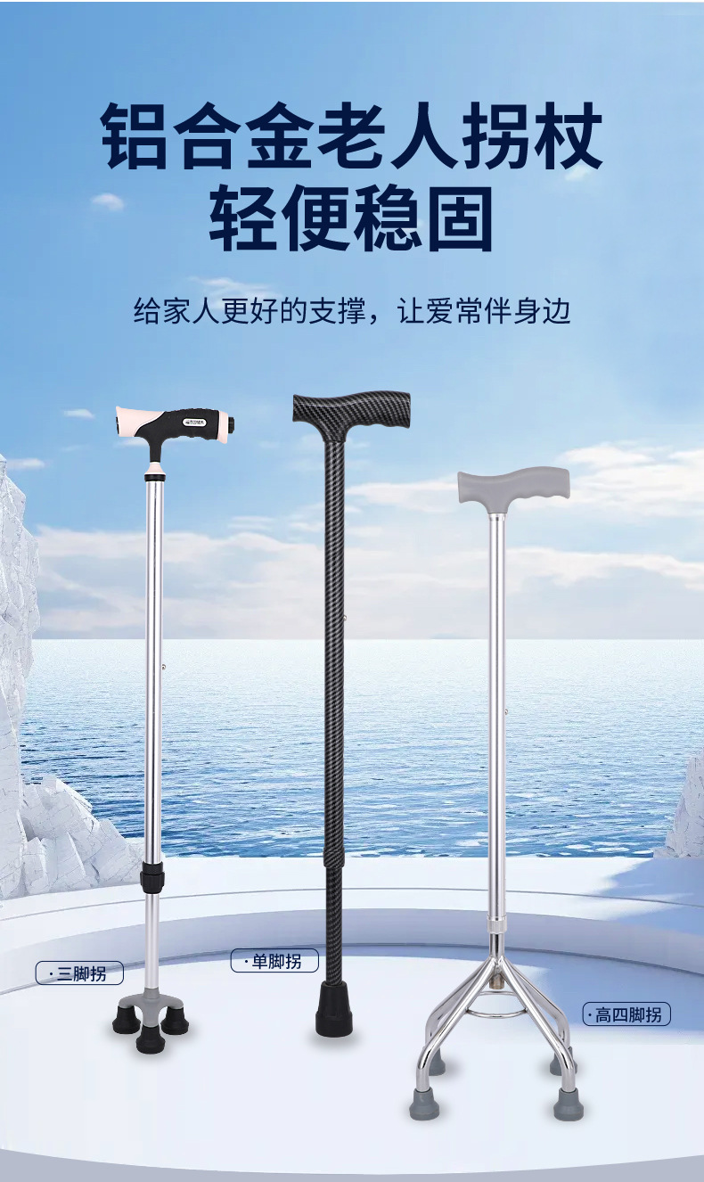 노인 보행 보조용 지팡이, 미끄럼 방지 지팡이, 골절 환자 재활을 위한 3족 지팡이 및 4족 지팡이, 경량 4족 지팡이스토어 가기