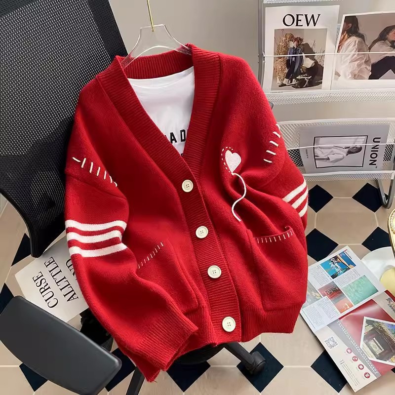 일본 줄무늬 스트링 스웨터 카디건 여성 코트 가을, 겨울 새로운 스타일 러브 레이지 스타일 루즈 v 넥 니트 탑