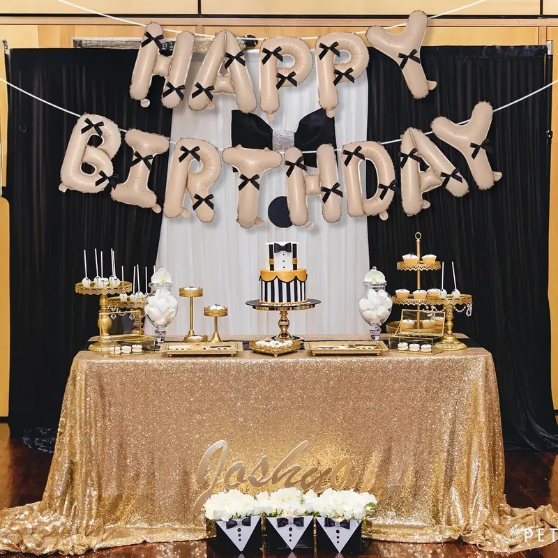 생일 축하 테마 활 풍선 패키지 편지 알루미늄 필름 풍선 파티 블랙 실버 배경 장식 핫 모델스토어 가기