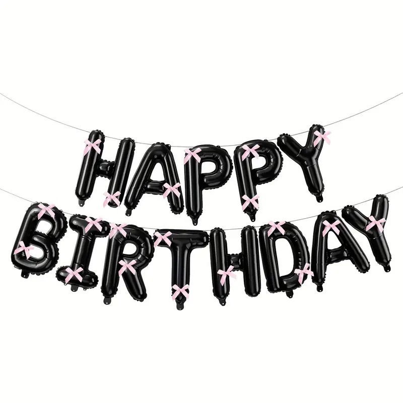 생일 축하 테마 활 풍선 패키지 편지 알루미늄 필름 풍선 파티 블랙 실버 배경 장식 핫 모델