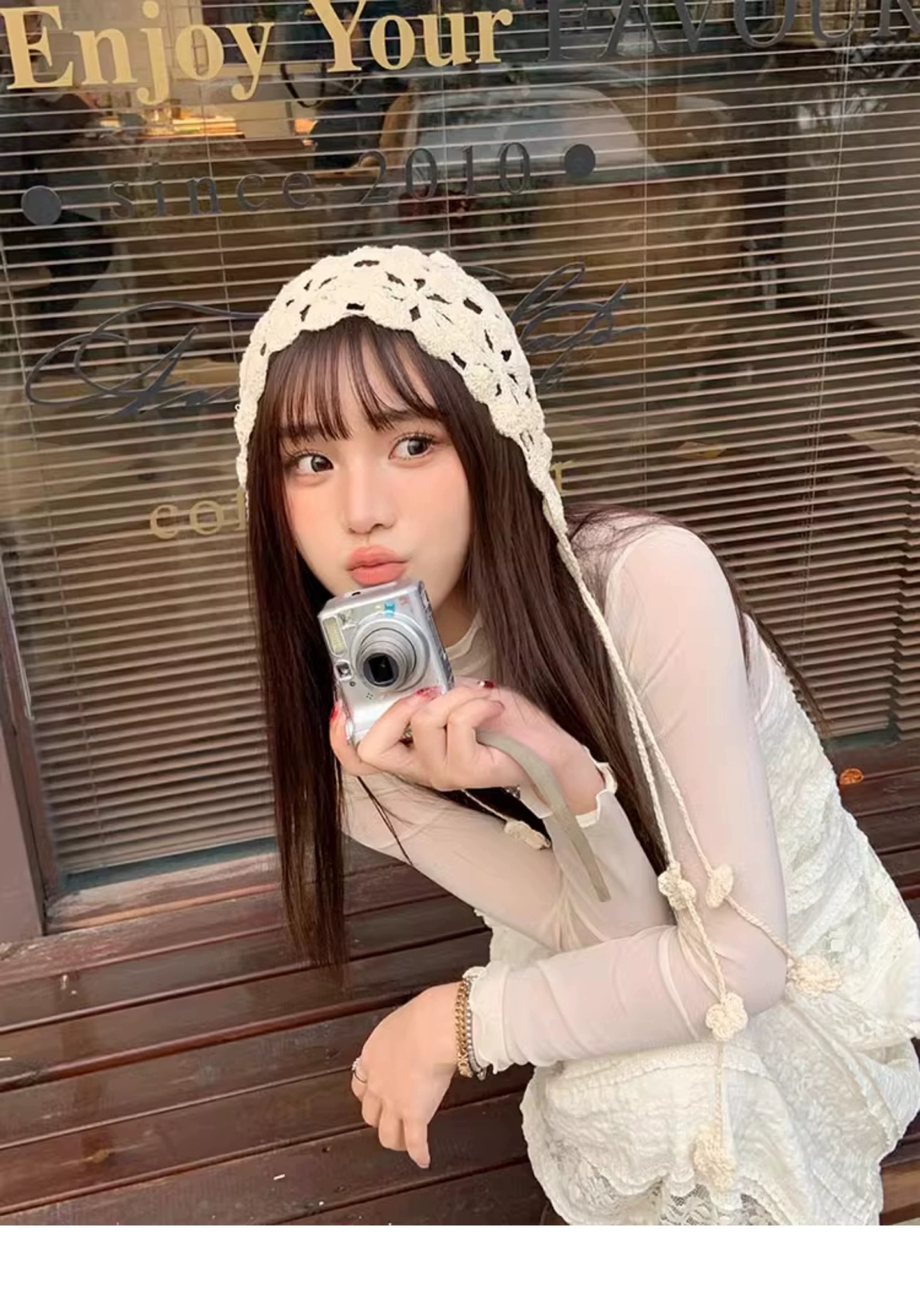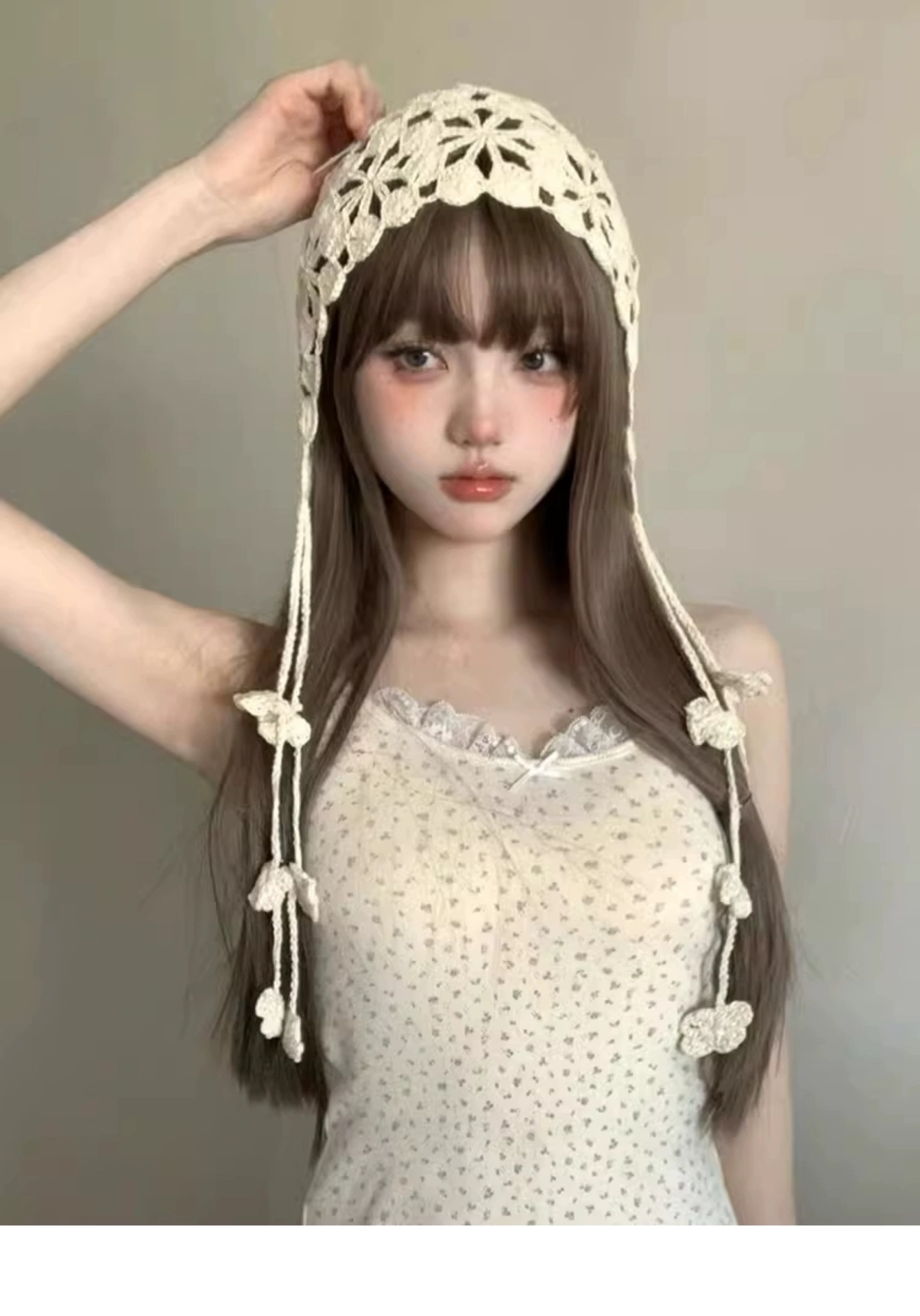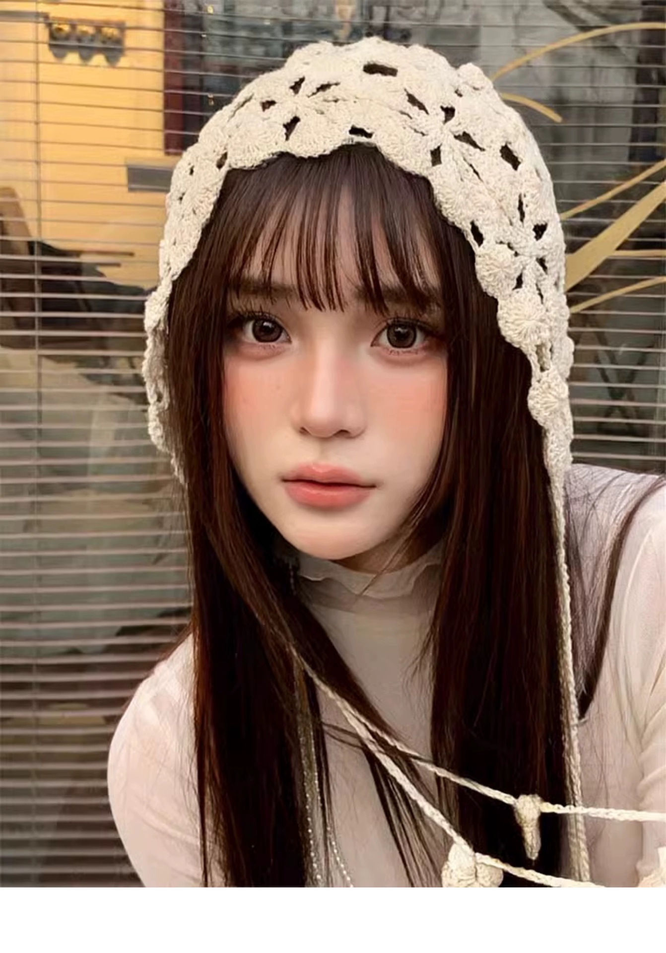 학생 소녀를위한 일본 손으로 짠 모직 모자 ins 스타일 달콤하고 귀여운 손으로 뜨개질 중공 니트 바오 터프 모자스토어 가기