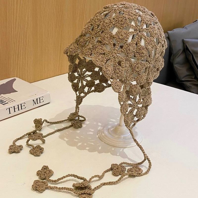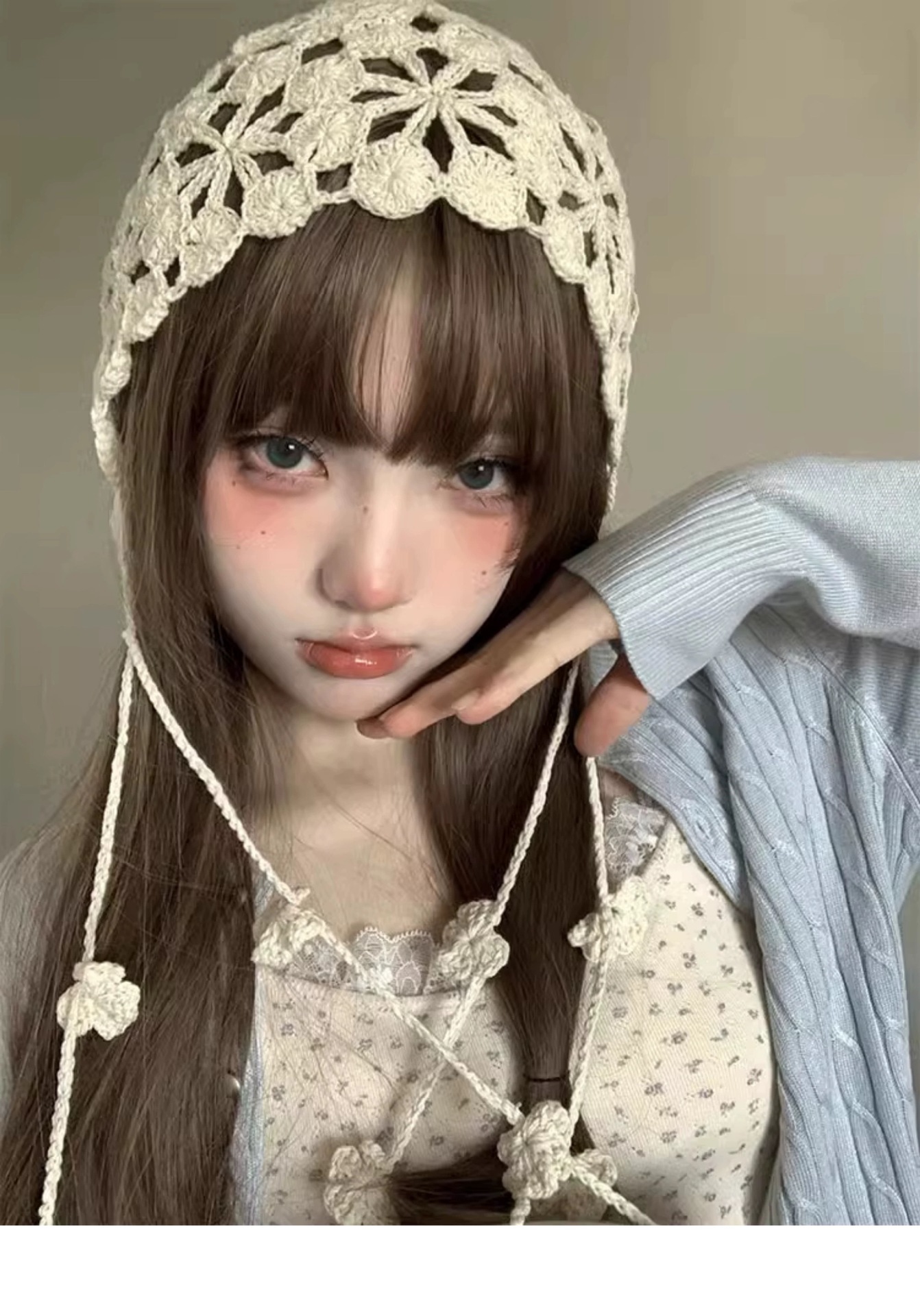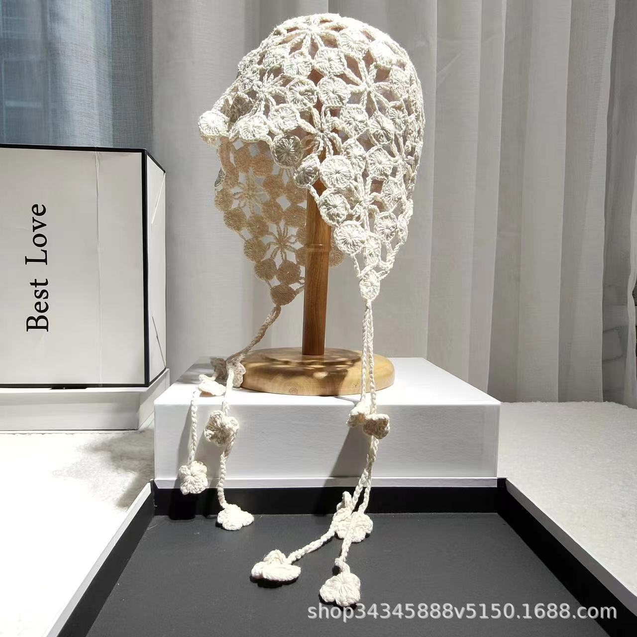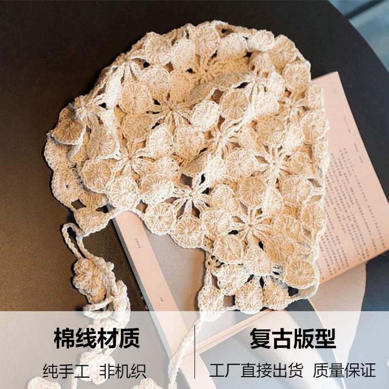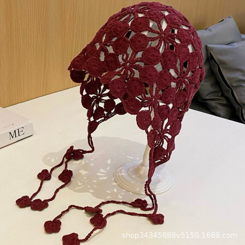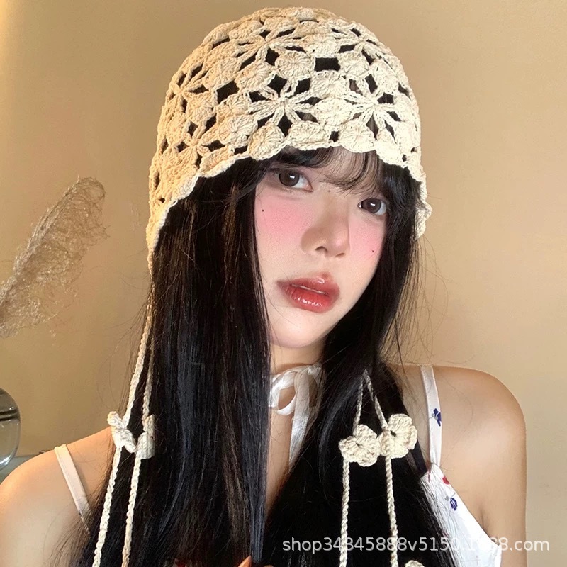 학생 소녀를위한 일본 손으로 짠 모직 모자 ins 스타일 달콤하고 귀여운 손으로 뜨개질 중공 니트 바오 터프 모자