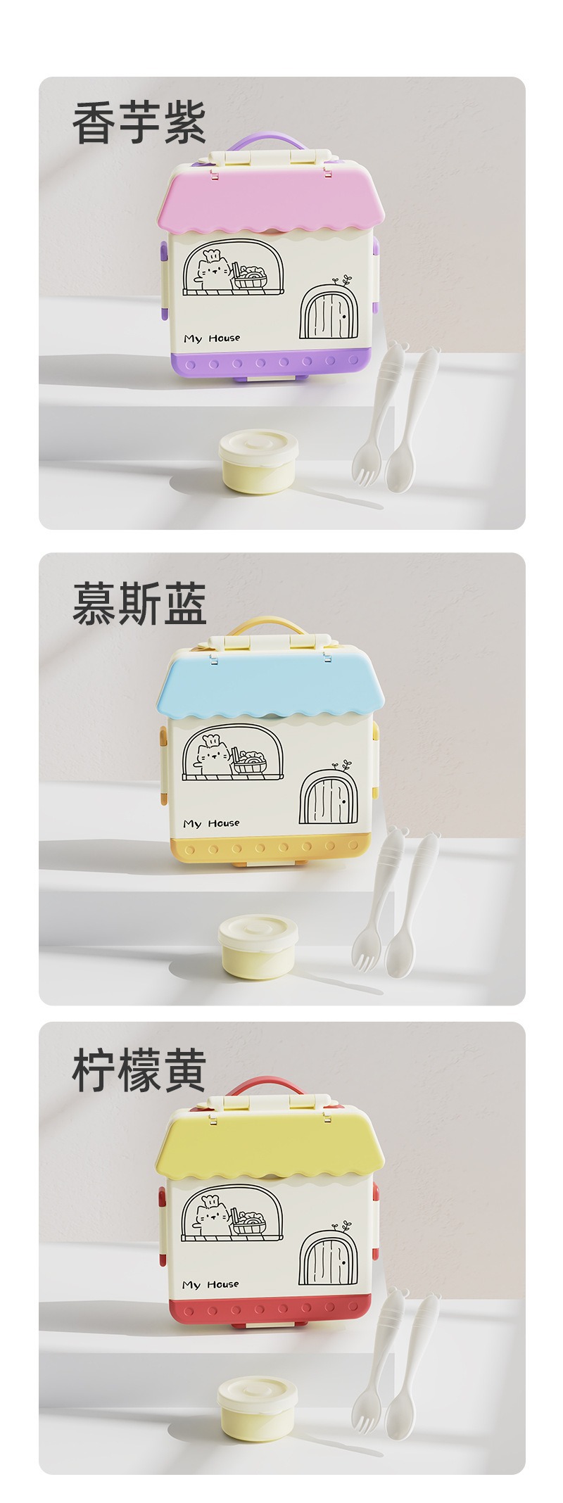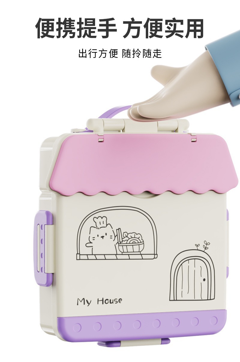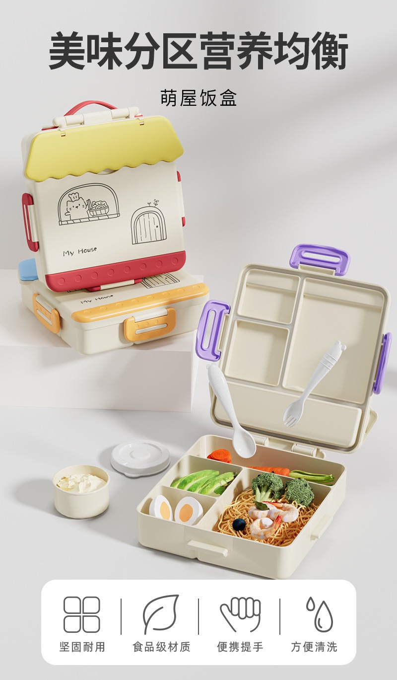 청소가 쉽고 식기세척기 사용이 가능한 어린이용 재미있는 식품등급 도시락통, 초등학생을 위한 휴대용 과일 영양 도시락통