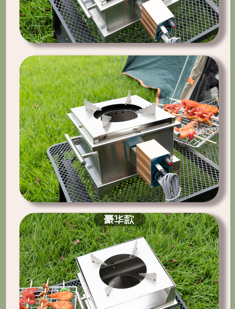 • 【럭셔리 모델】 방풍 덮개, 화력 집중 링, 냄비 받침대, 송풍기 키트, 수납 가방