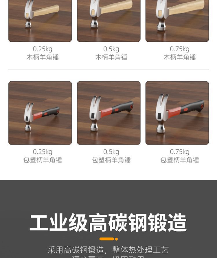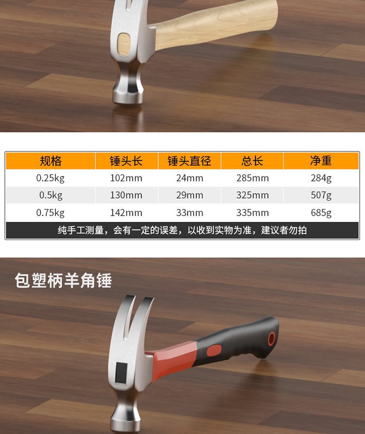 • 업그레이드된 고무 코팅 손잡이 클로 해머--0.75KG(둥근 머리)
