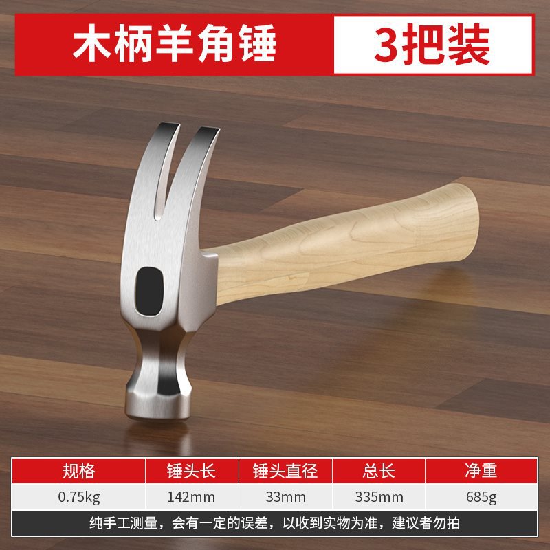 • [3개 팩] 나무 손잡이가 달린 클로 해머--0.75KG(둥근 머리)