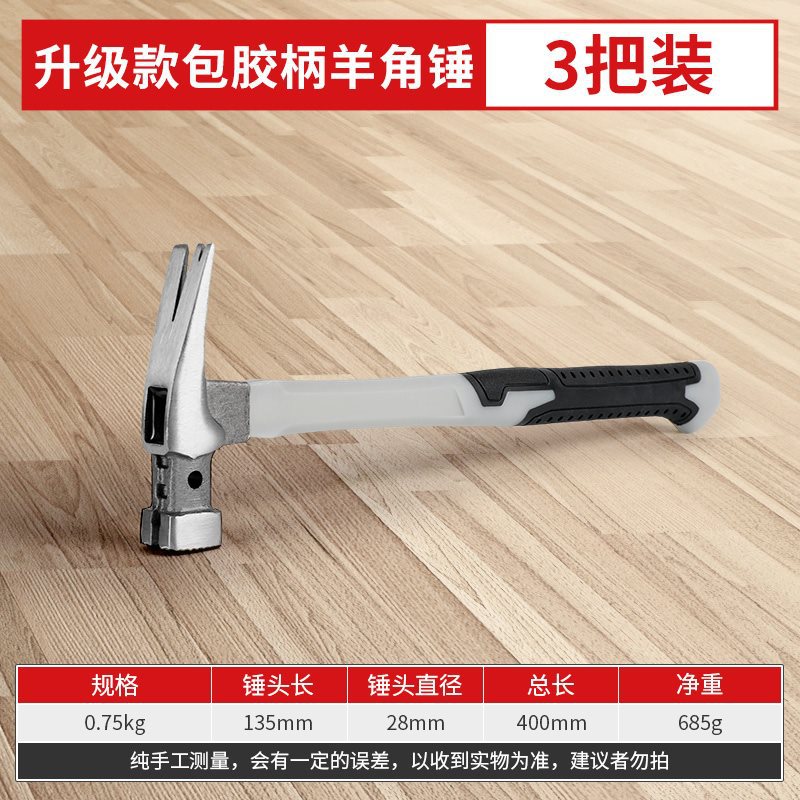 • [3개 팩] 업그레이드된 고무 코팅 손잡이 클로 해머--0.75KG(둥근 머리)