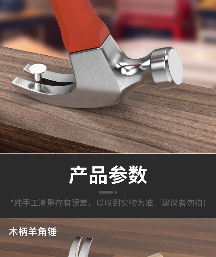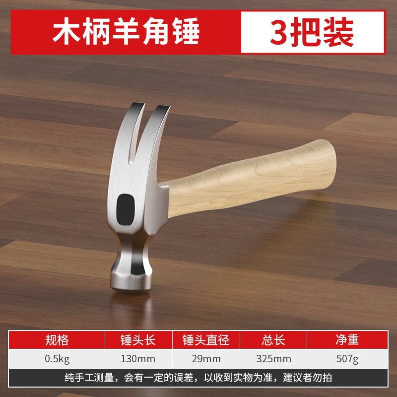 • [3개 팩] 나무 손잡이가 달린 클로 해머--0.5KG(둥근 머리)