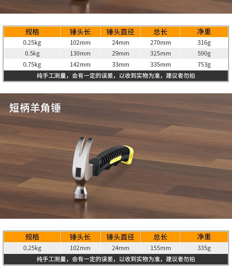 • [3개 팩] 짧은 손잡이 클로 해머--0.25KG(둥근 머리)