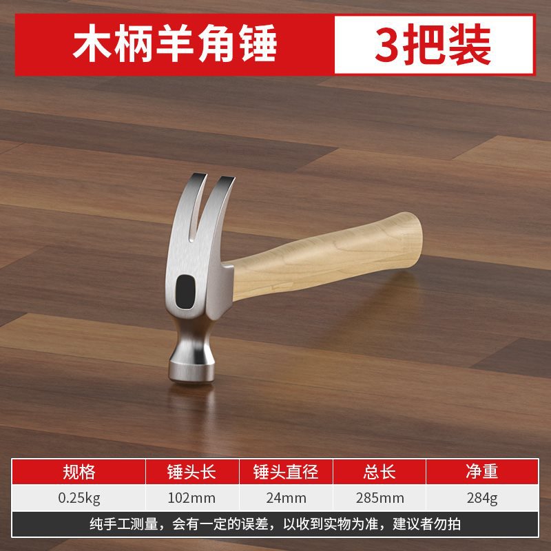 • [3개 팩] 나무 손잡이가 달린 클로 해머--0.25KG(둥근 머리)