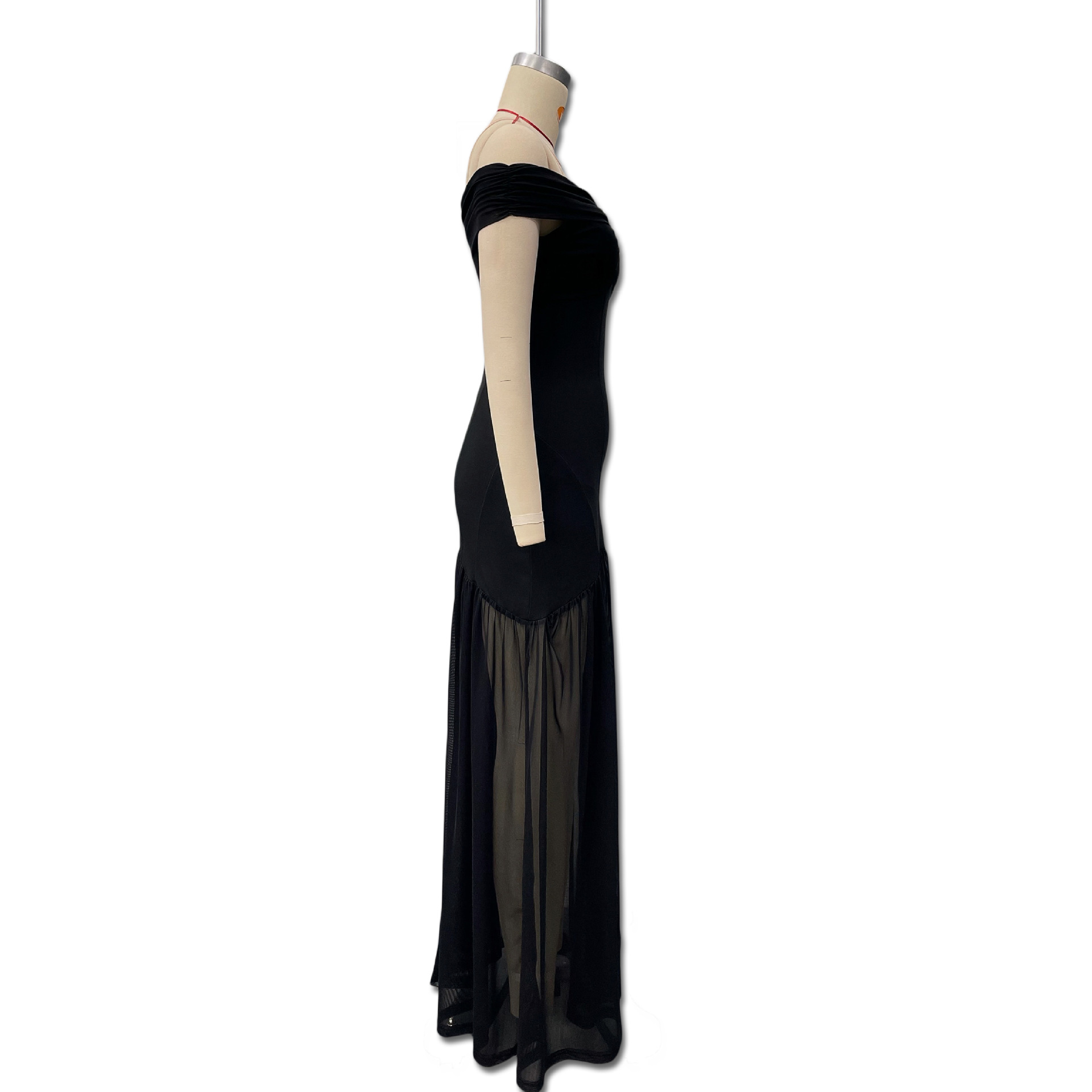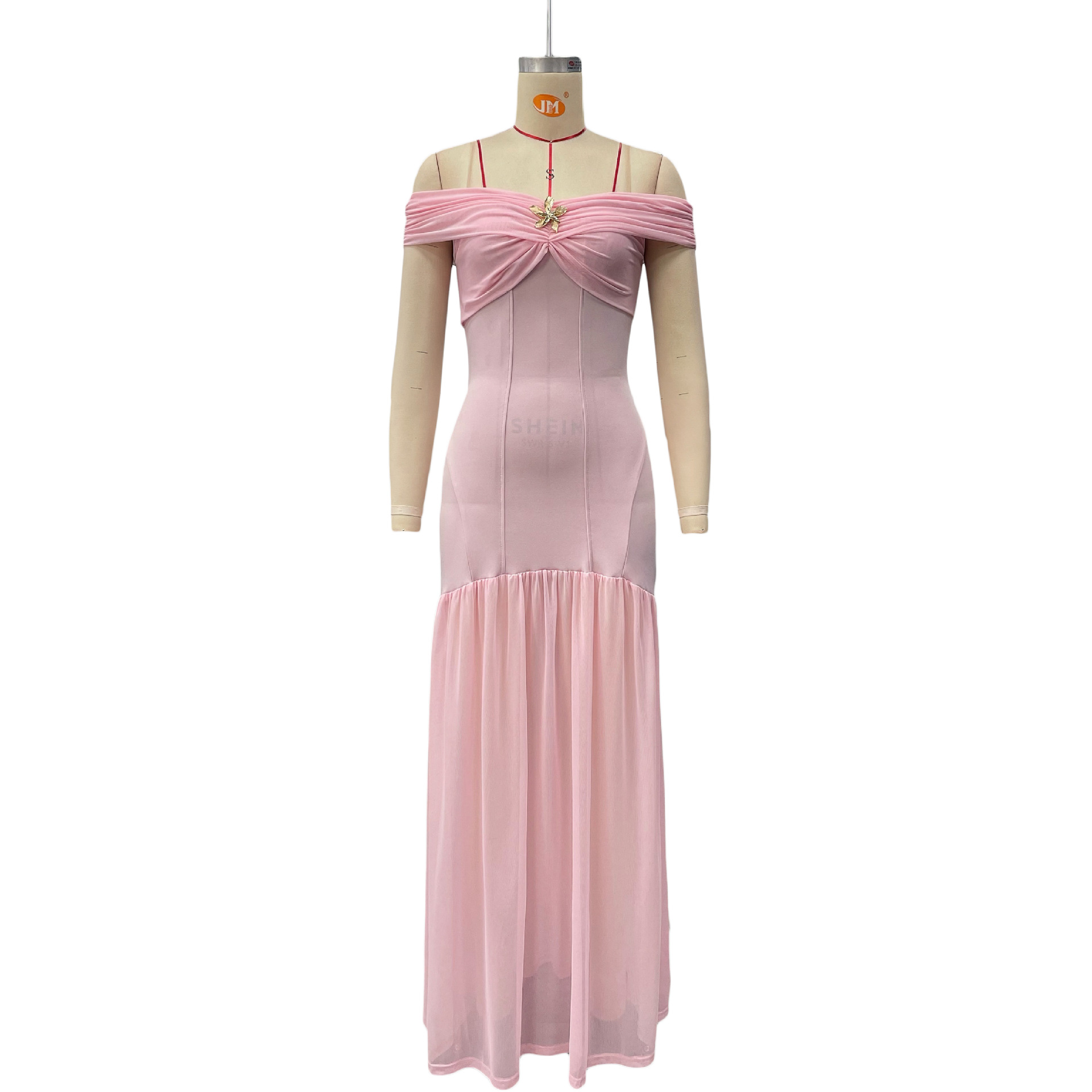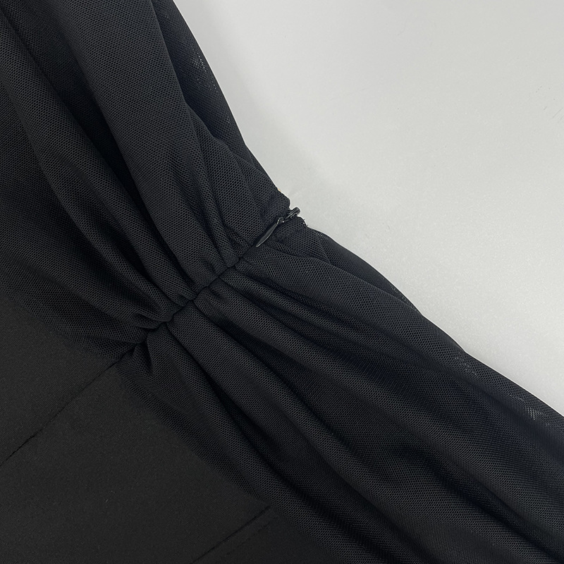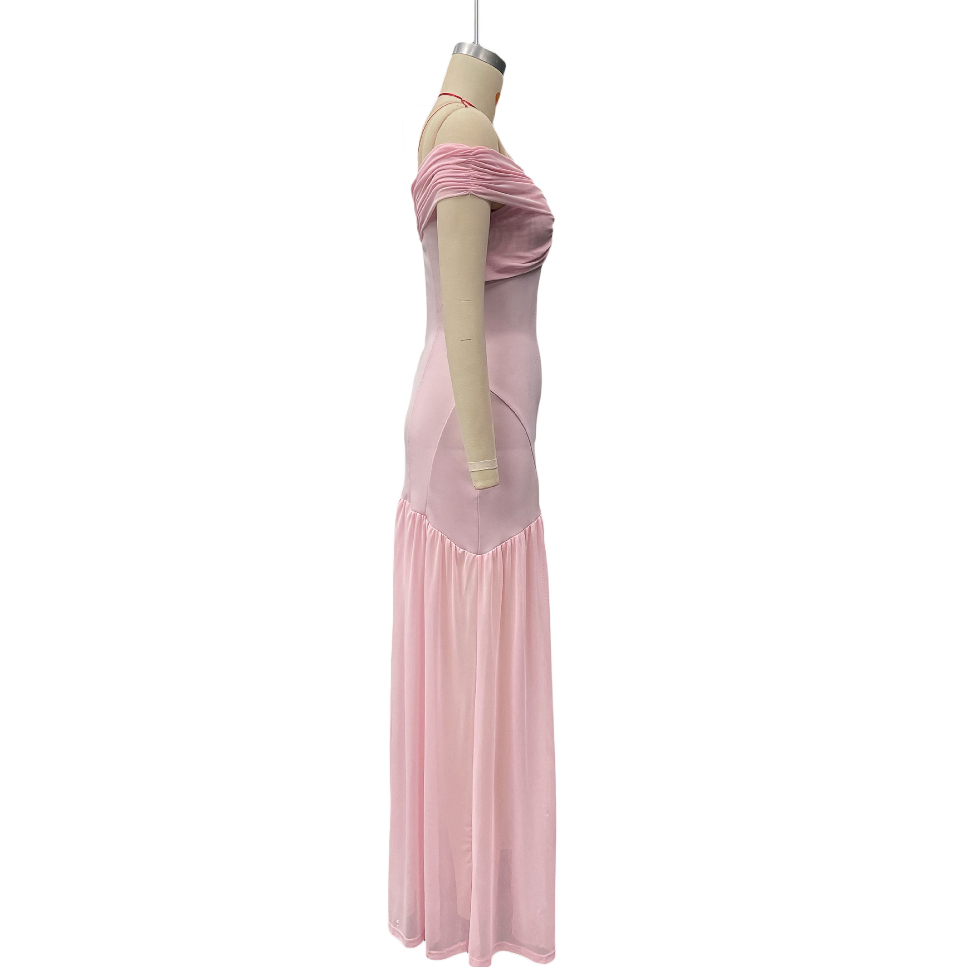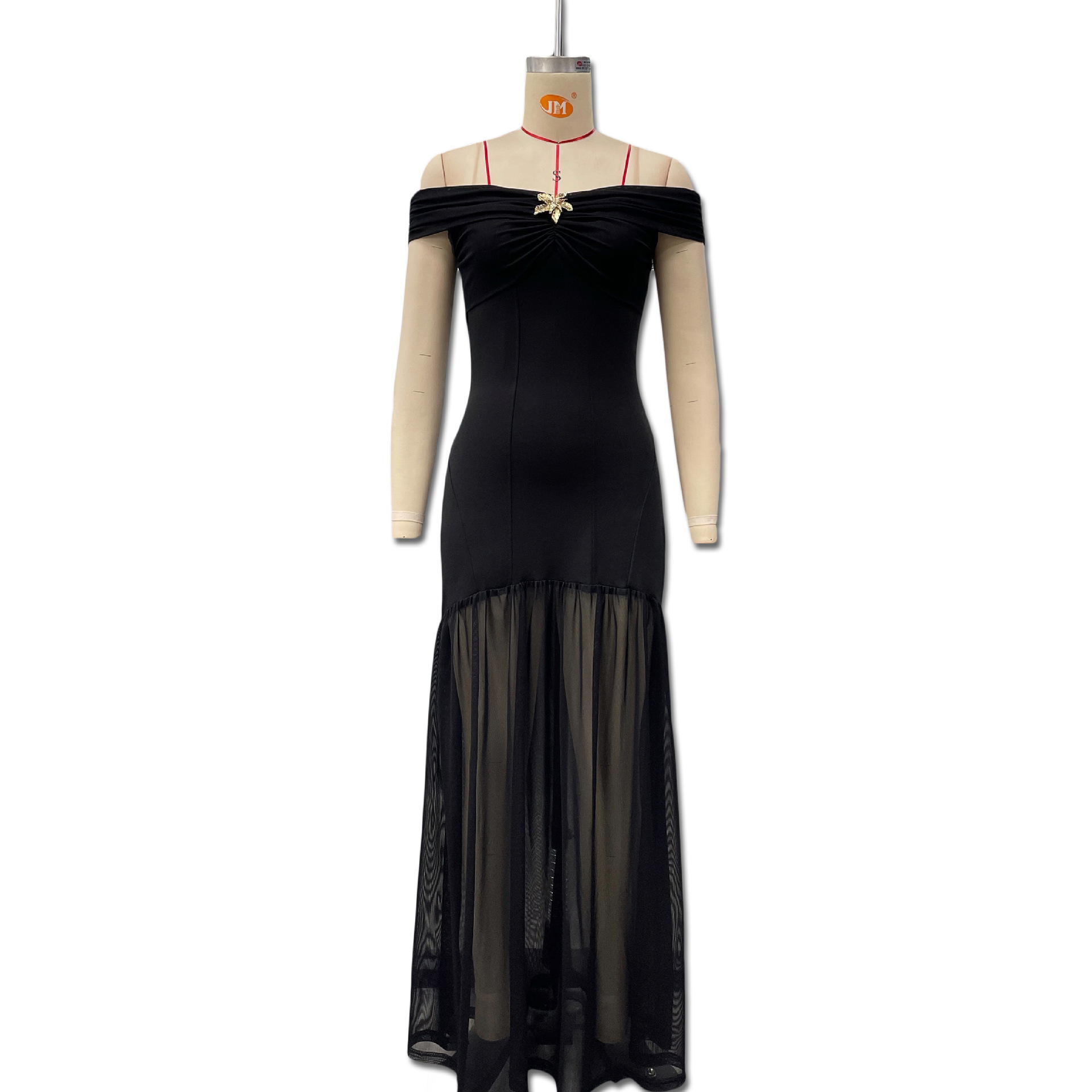 2025 새로운 크로스보더 스타일 우아한 원 숄더 롱 드레스 유럽과 미국 스타일의 백리스 섹시한 메쉬 스플라이싱 드레스