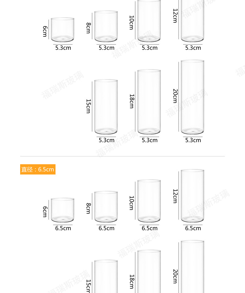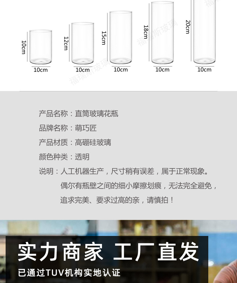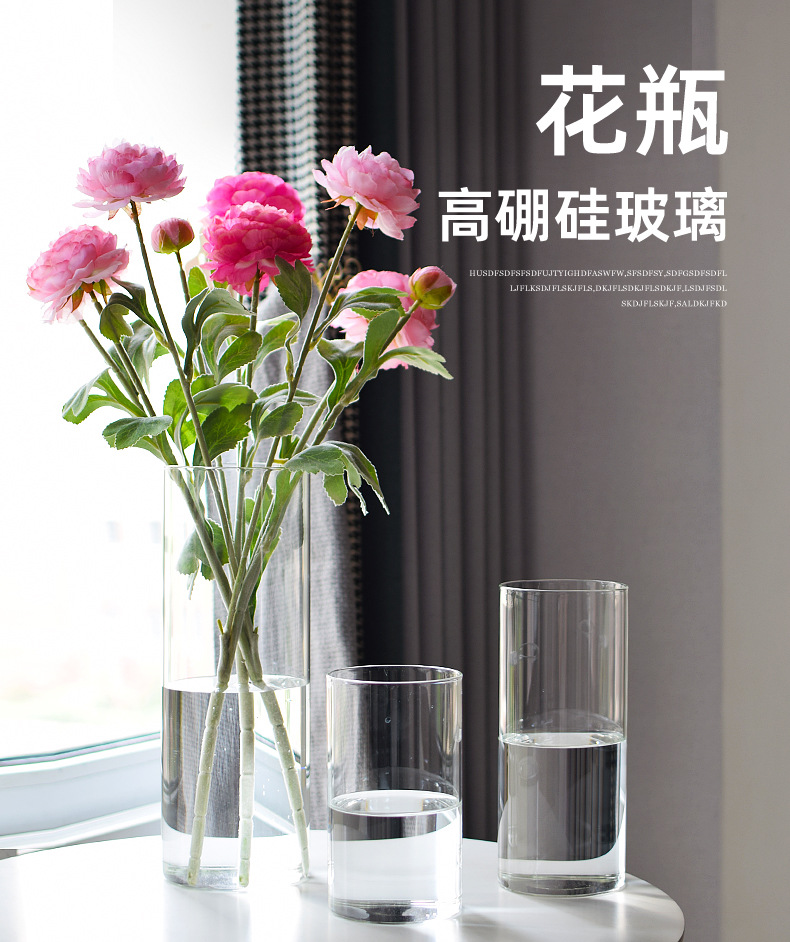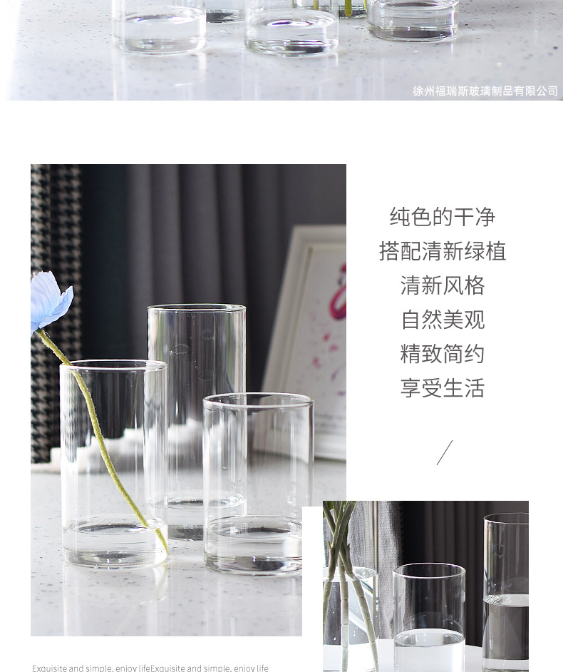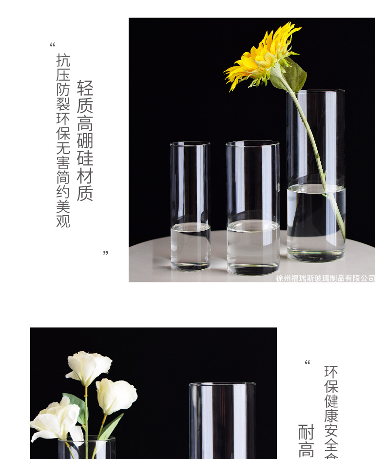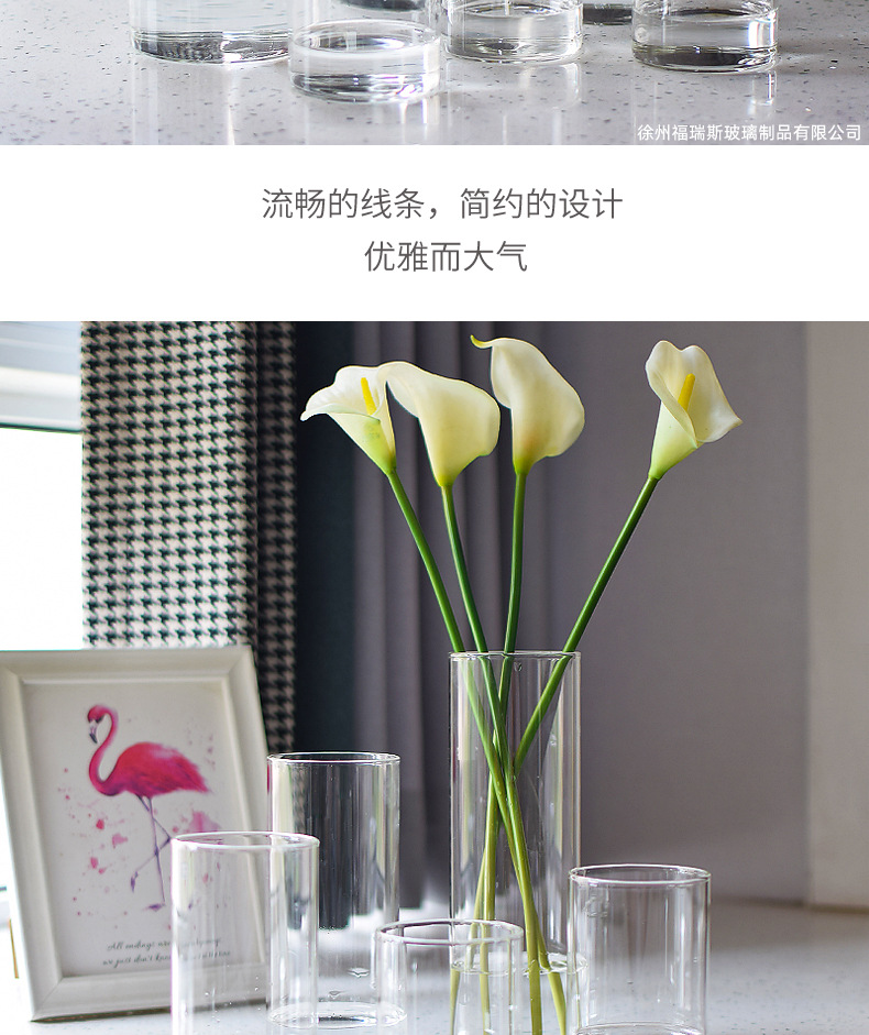 국경 간 맞춤형 고붕규산 유리 꽃병 직선형 투명 수경 식물 pothos 부유성 대나무 간단한 원통형 꽃병스토어 가기