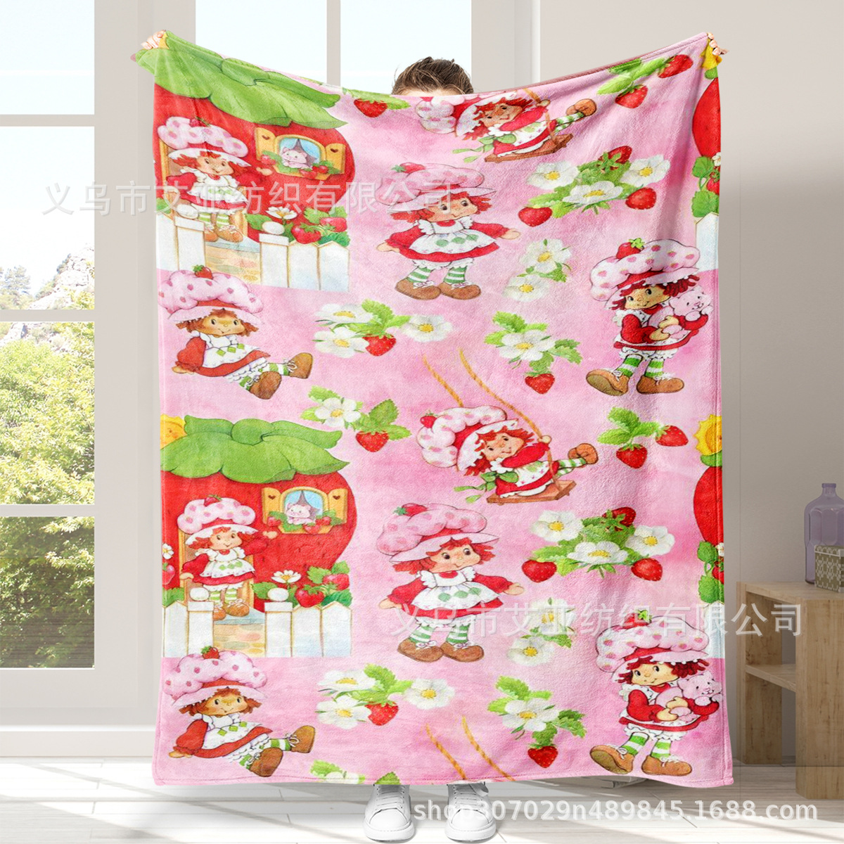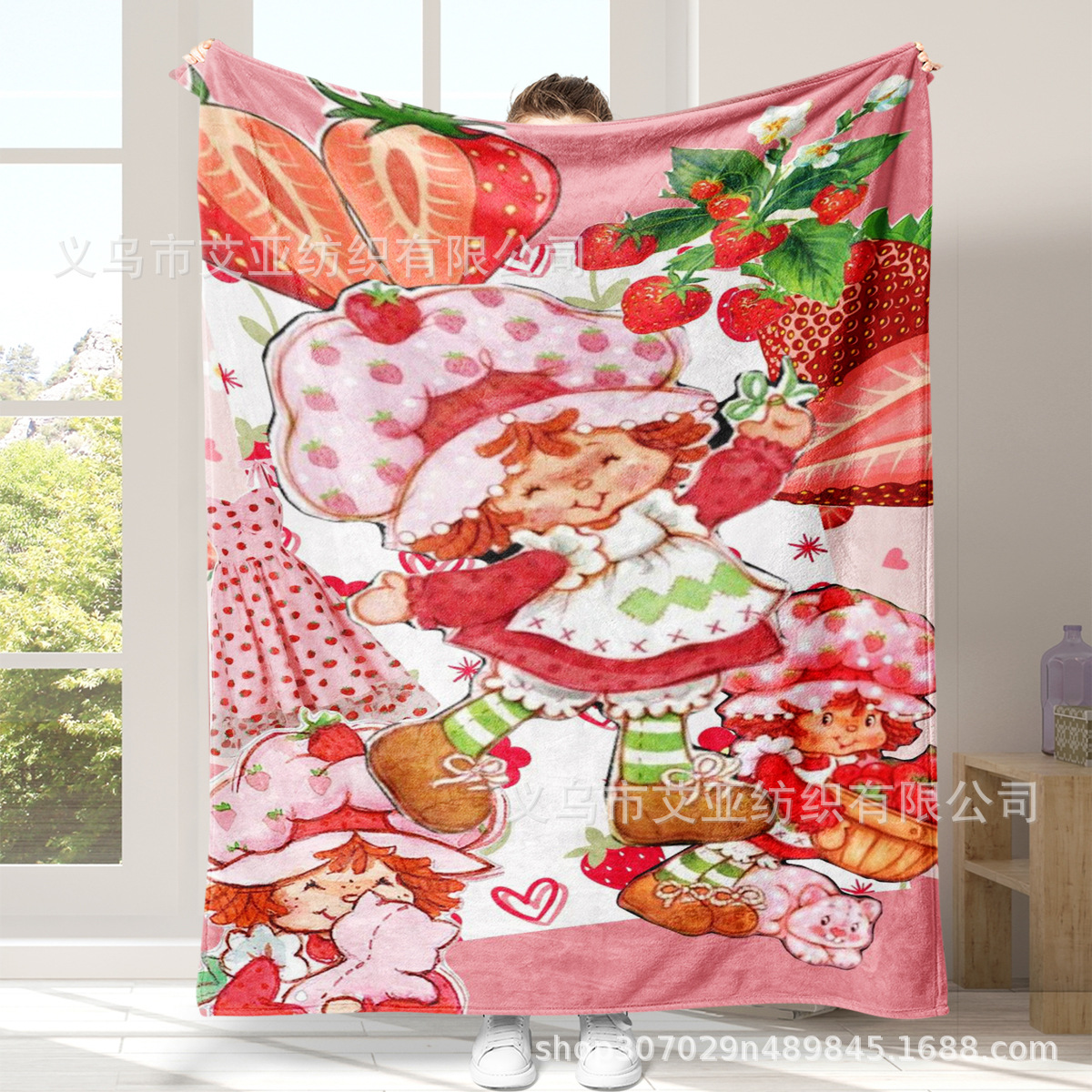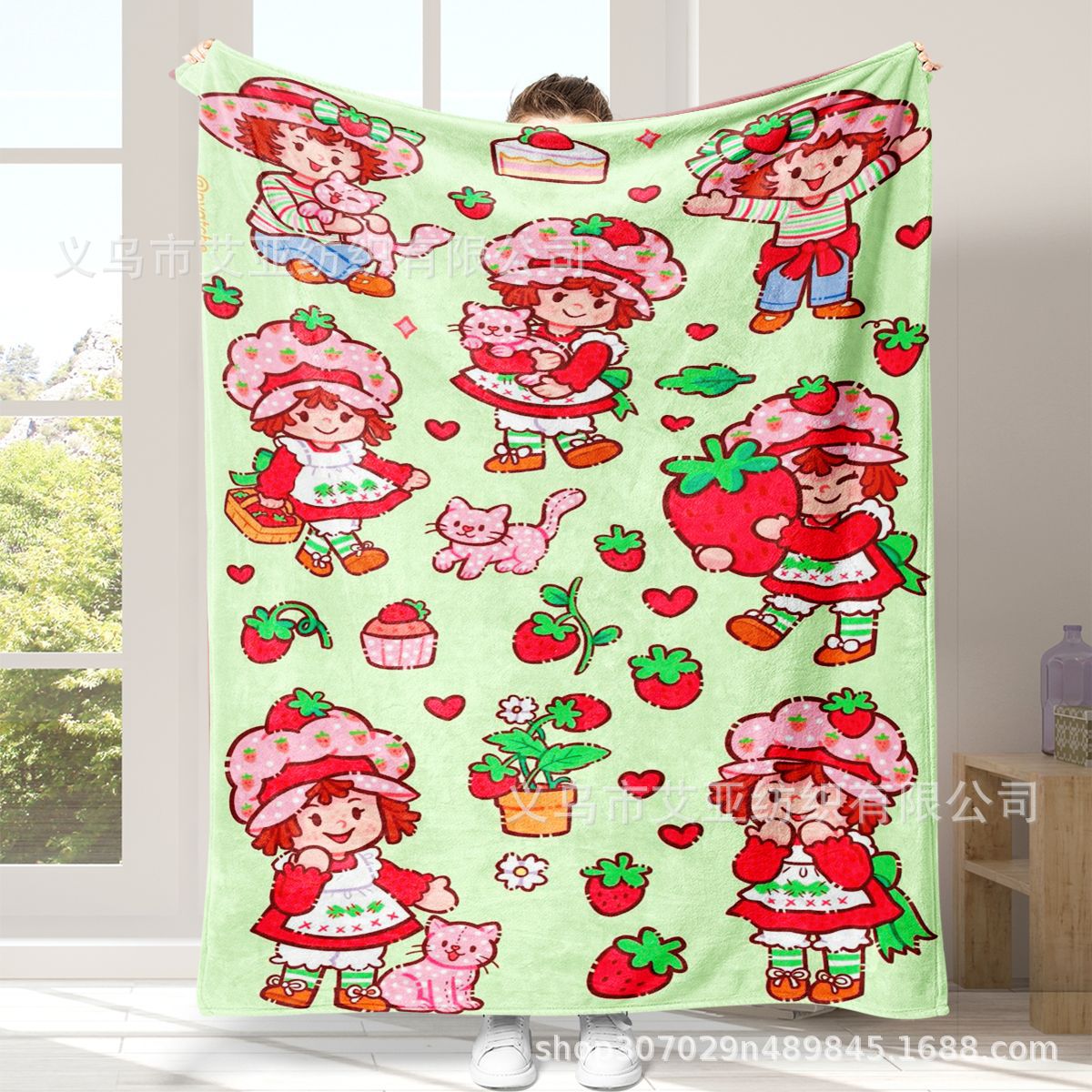 딸기 연인 만화 애니메이션 어린 소녀 담요 플란넬 부드러운 담요 낮잠 담요 에어컨 담요 침대 담요스토어 가기