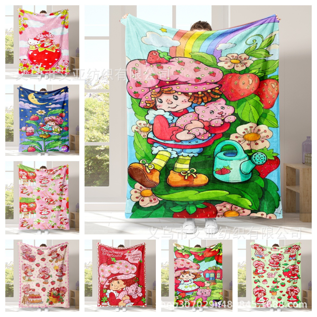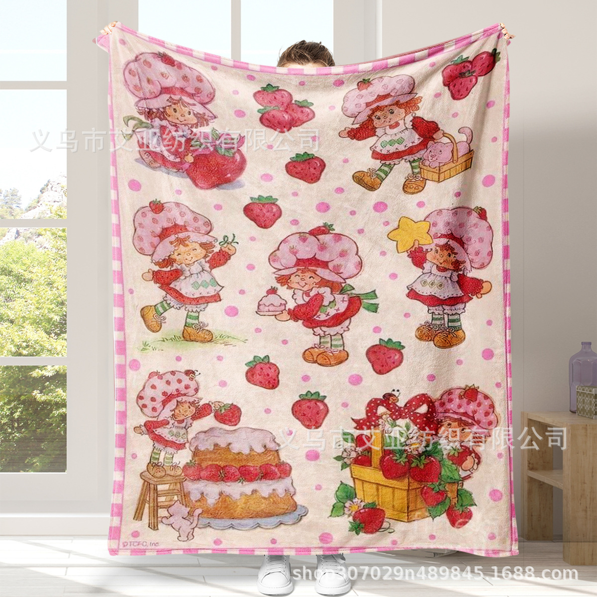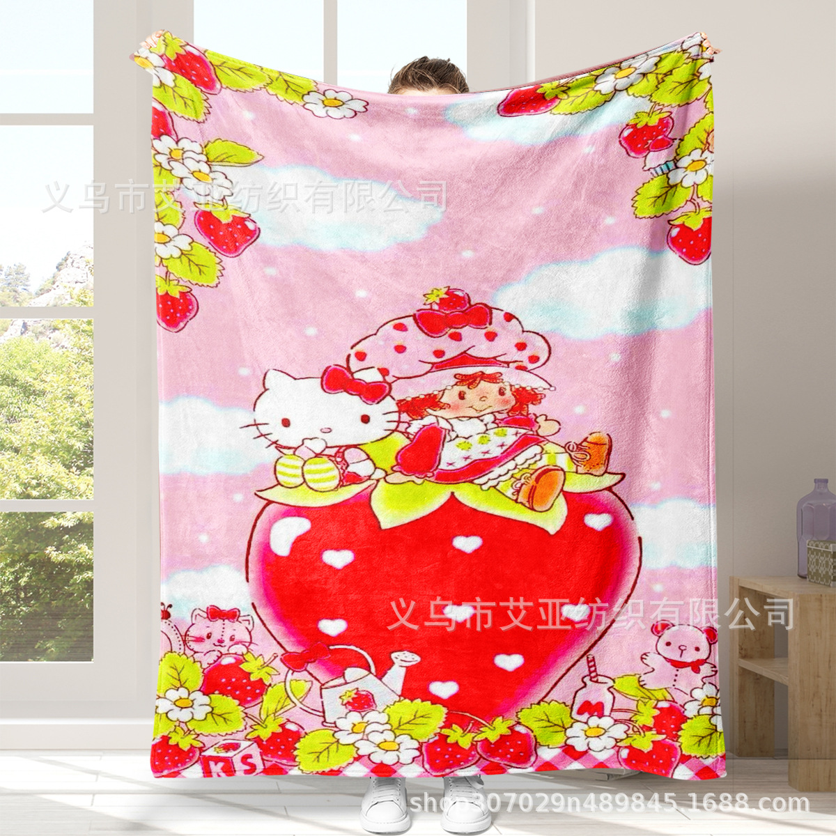 딸기 연인 만화 애니메이션 어린 소녀 담요 플란넬 부드러운 담요 낮잠 담요 에어컨 담요 침대 담요스토어 가기