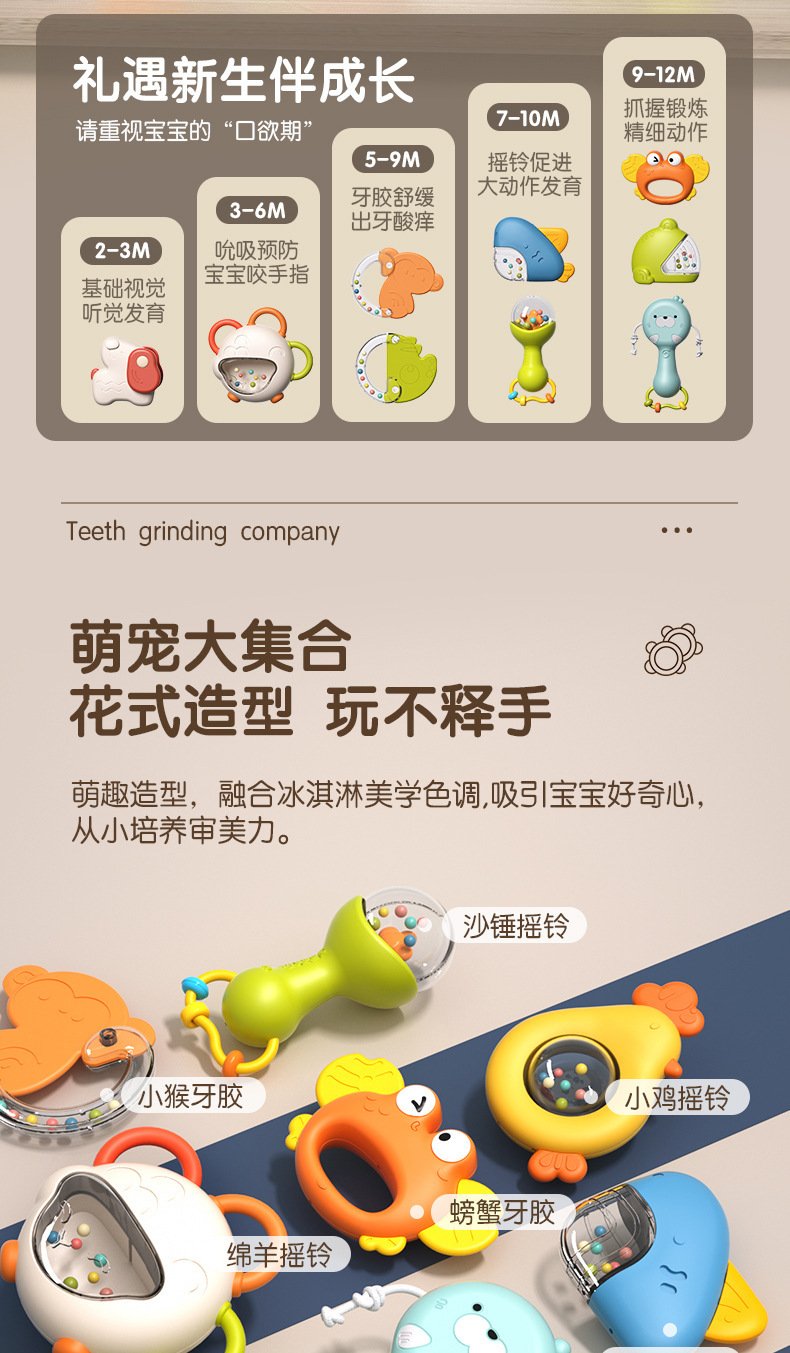 국경을 넘는 신생아 침대 옆 딸랑이 장난감 세트 0~1세 아기 치발기 씹을 수 있는 장난감 아기 진정 선물용 장난감스토어 가기