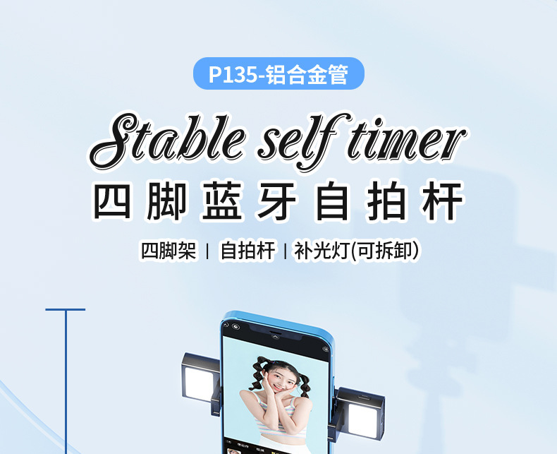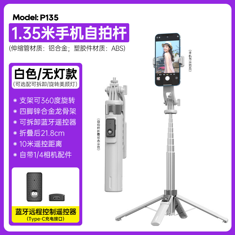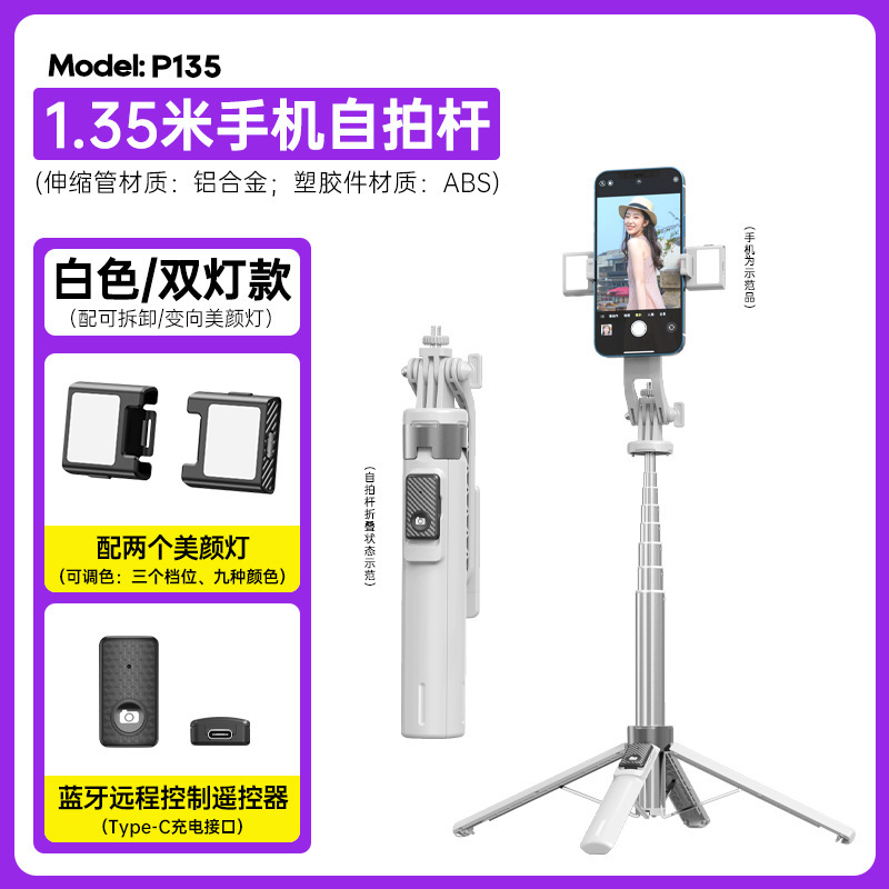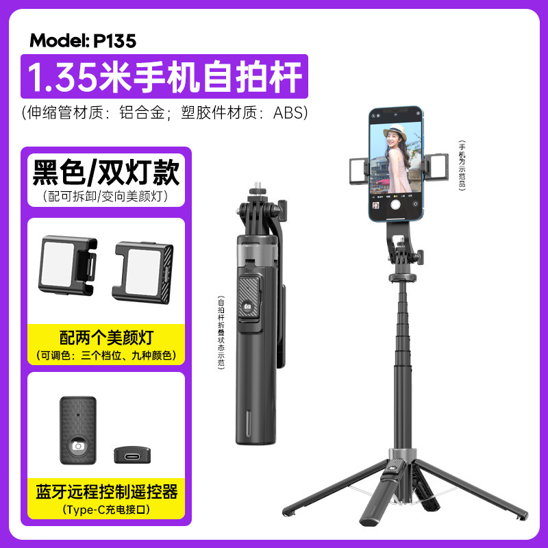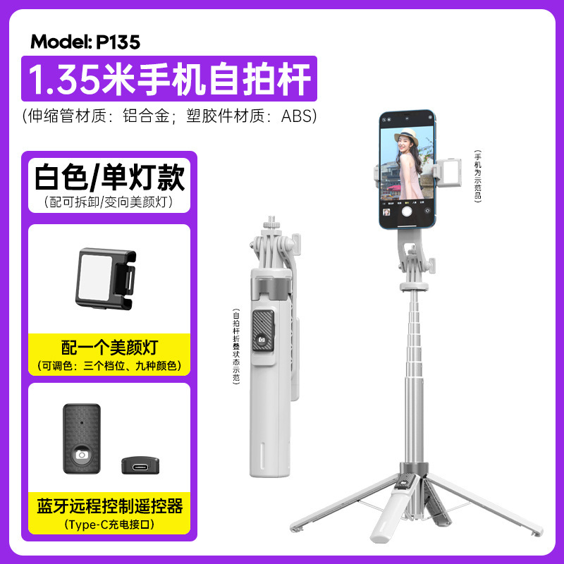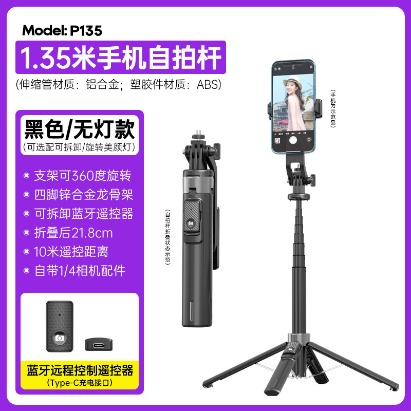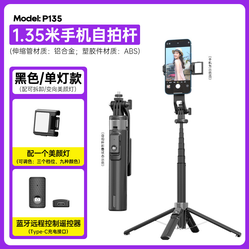 P135 셀카봉 흔들림 방지 확장형 블루투스 원격 제어 충전 휴대용 셀카봉 흔들림 방지 확장형