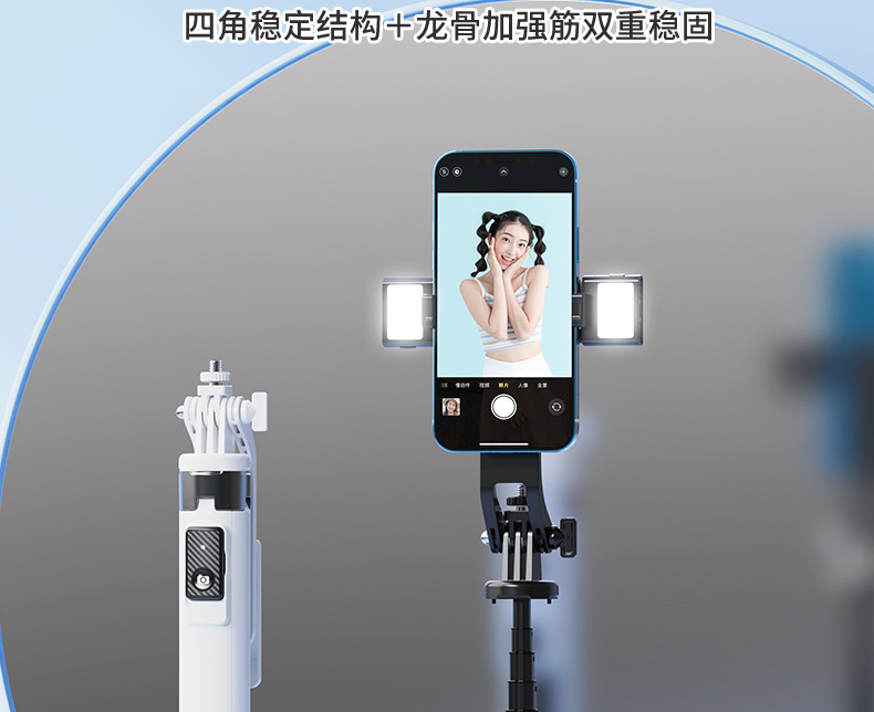 • P135-V2 알루미늄 합금 휴대폰 셀카봉/화이트/듀얼 라이트