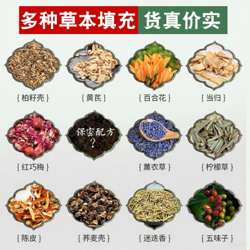 다양한 허브 충전재, 가족 전통 레시피 베개, 사이프러스 씨 껍질 베개, 순수 한방 레시피, 장미 꽃잎, 자스민
