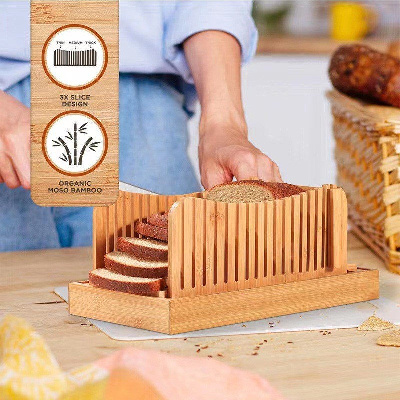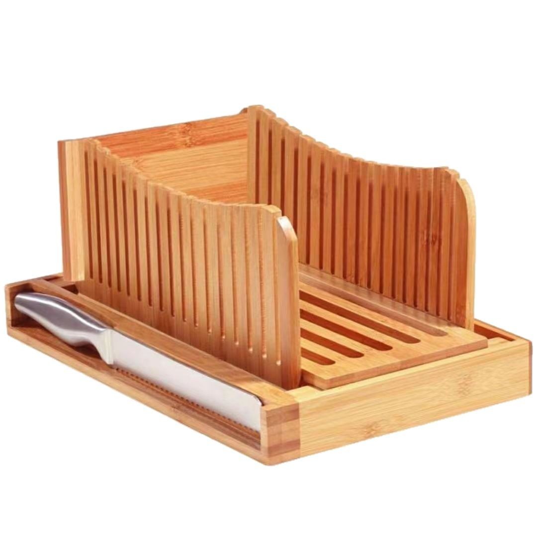 대나무 빵 슬라이서 가정용 토스트 빵 분배기 다기능 데스크탑 나무 부스러기 수집 트레이