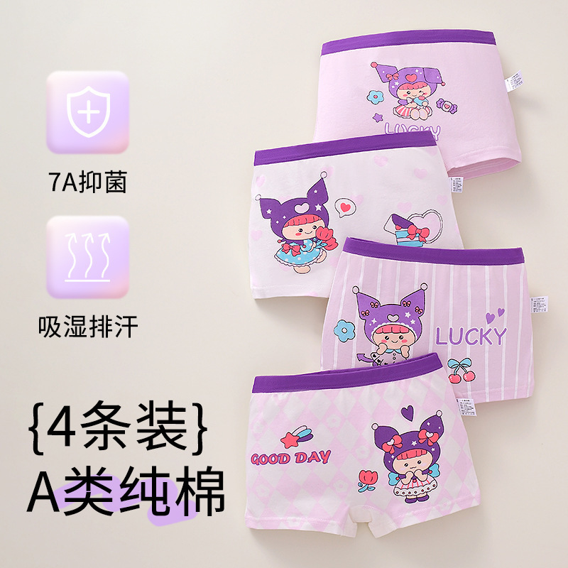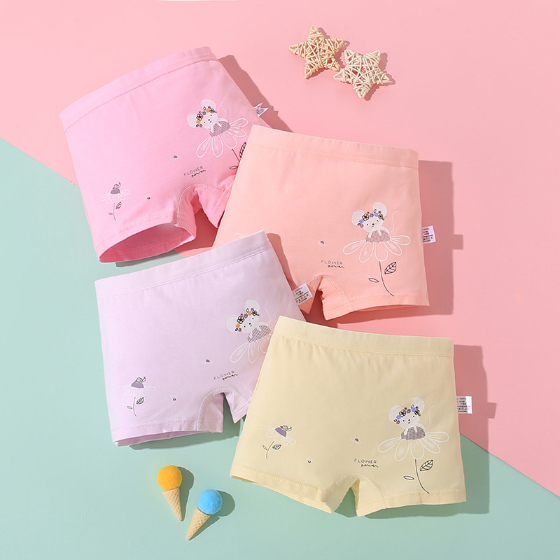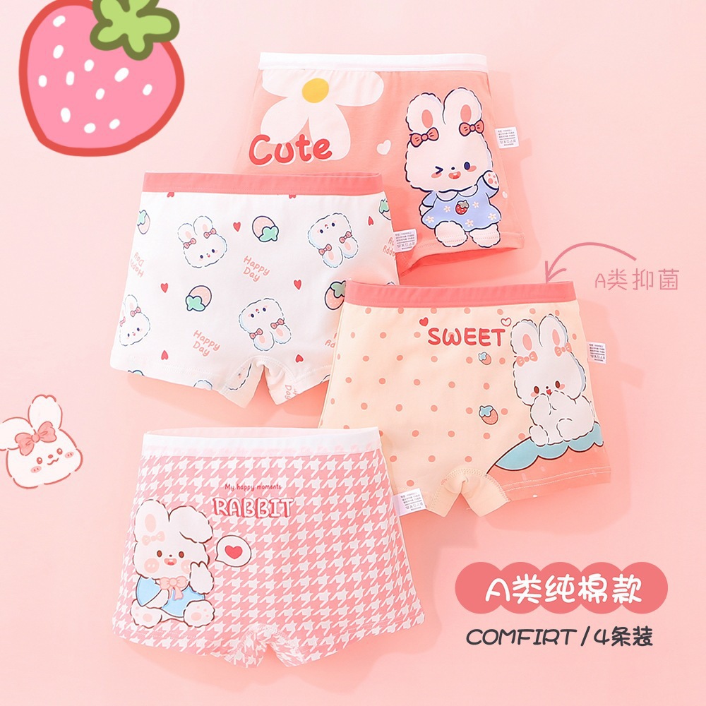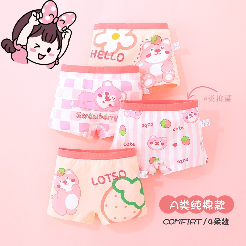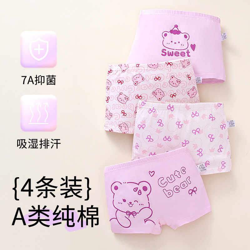 [4 팩] 항균 클래스 A 순면 속옷 사각형 만화 속옷 소녀 복서 반바지 하의 어린이 속옷스토어 가기