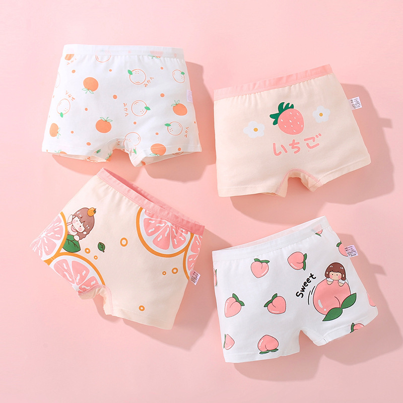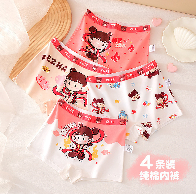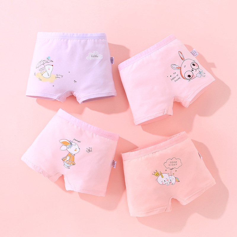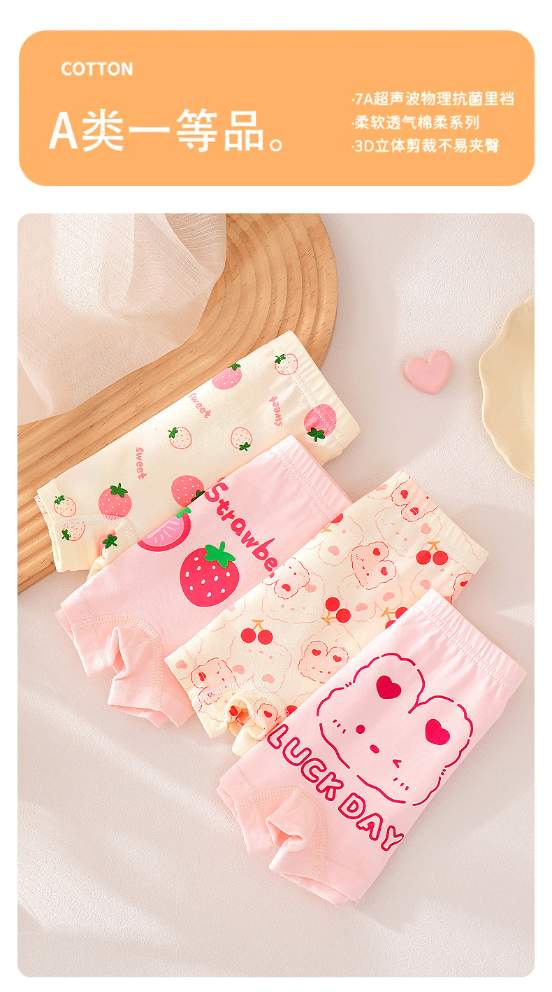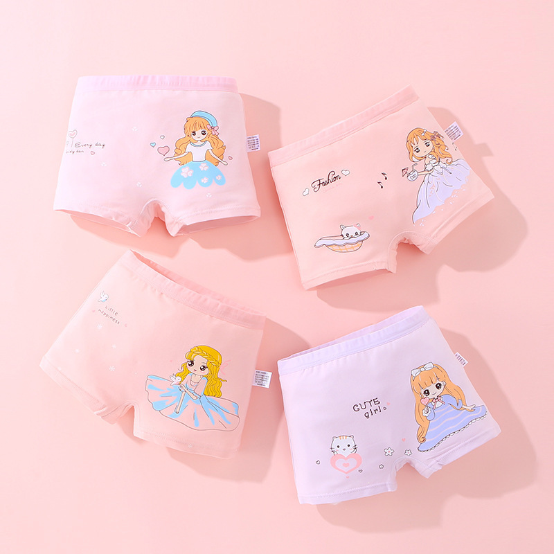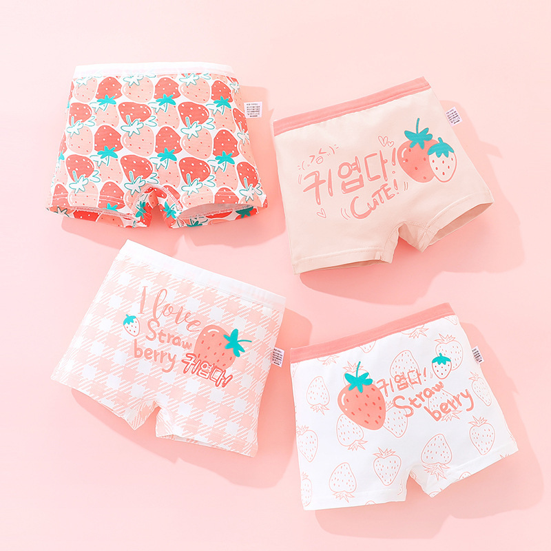 [4 팩] 항균 클래스 A 순면 속옷 사각형 만화 속옷 소녀 복서 반바지 하의 어린이 속옷스토어 가기