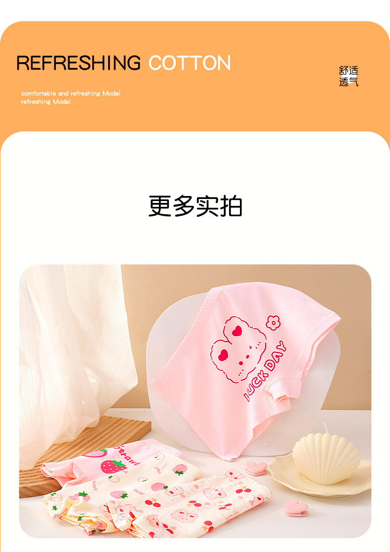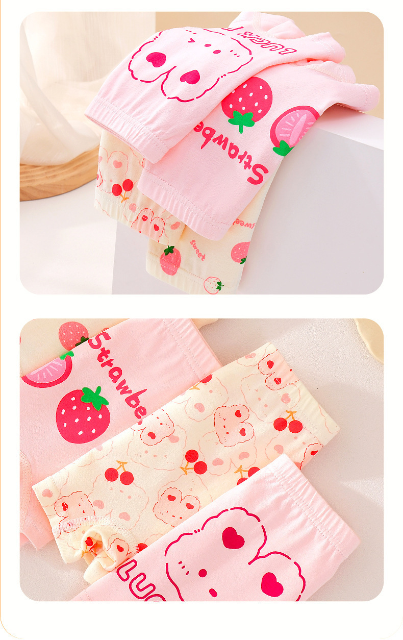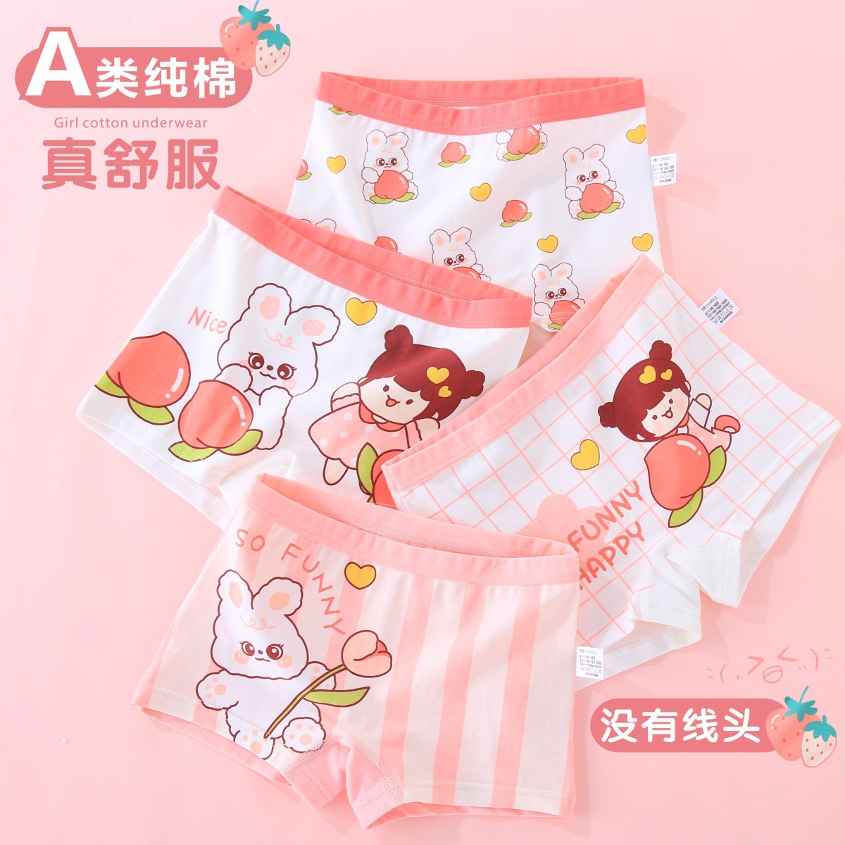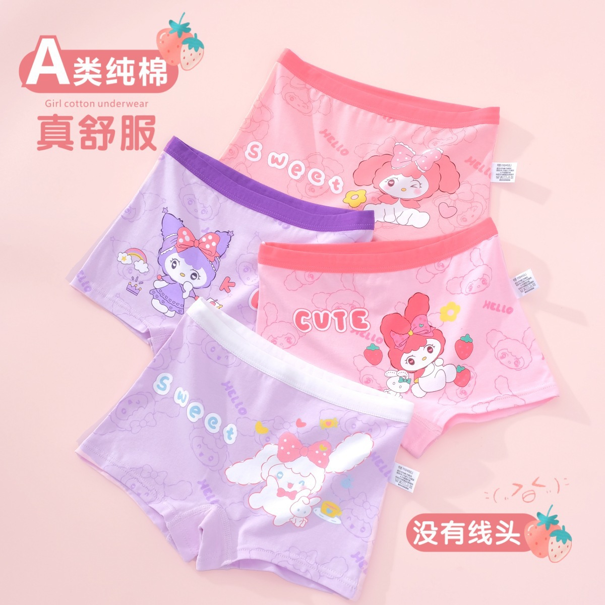 [4 팩] 항균 클래스 A 순면 속옷 사각형 만화 속옷 소녀 복서 반바지 하의 어린이 속옷스토어 가기