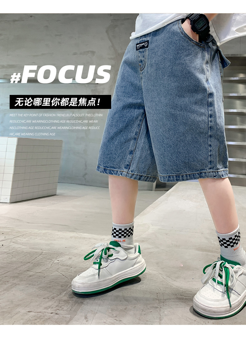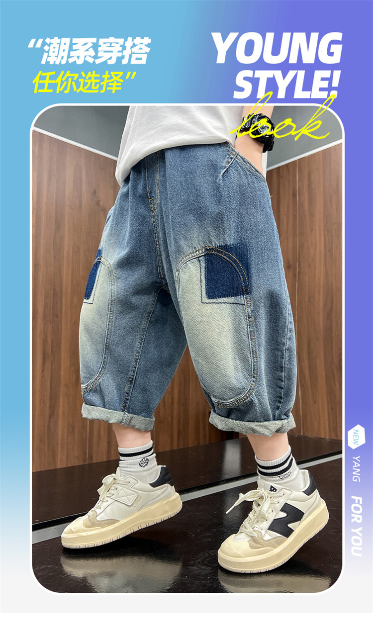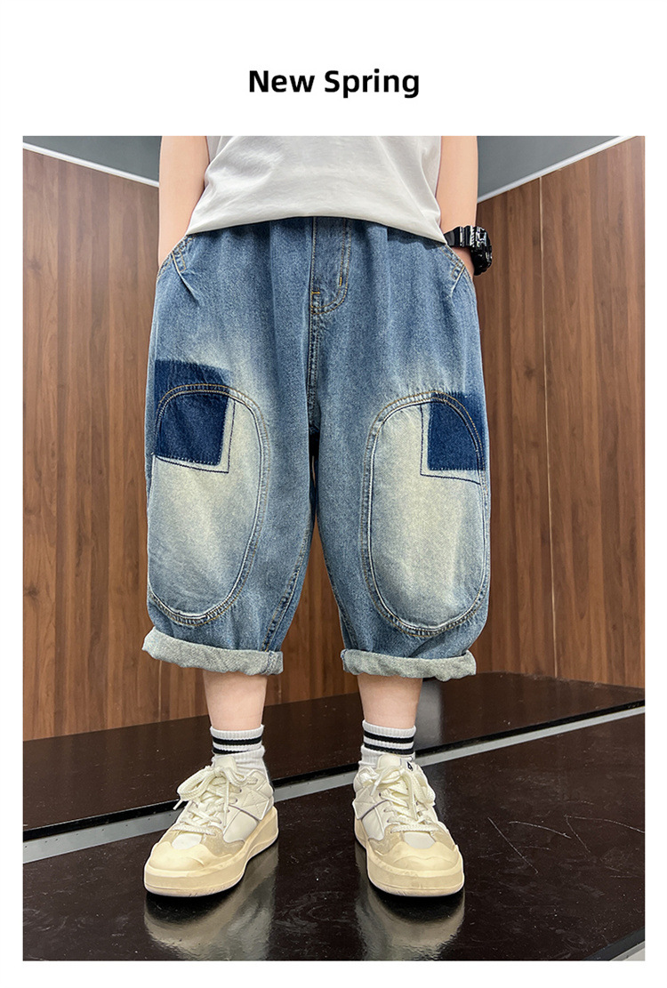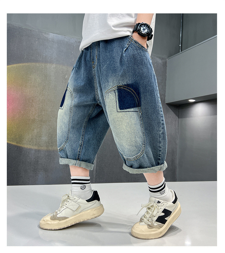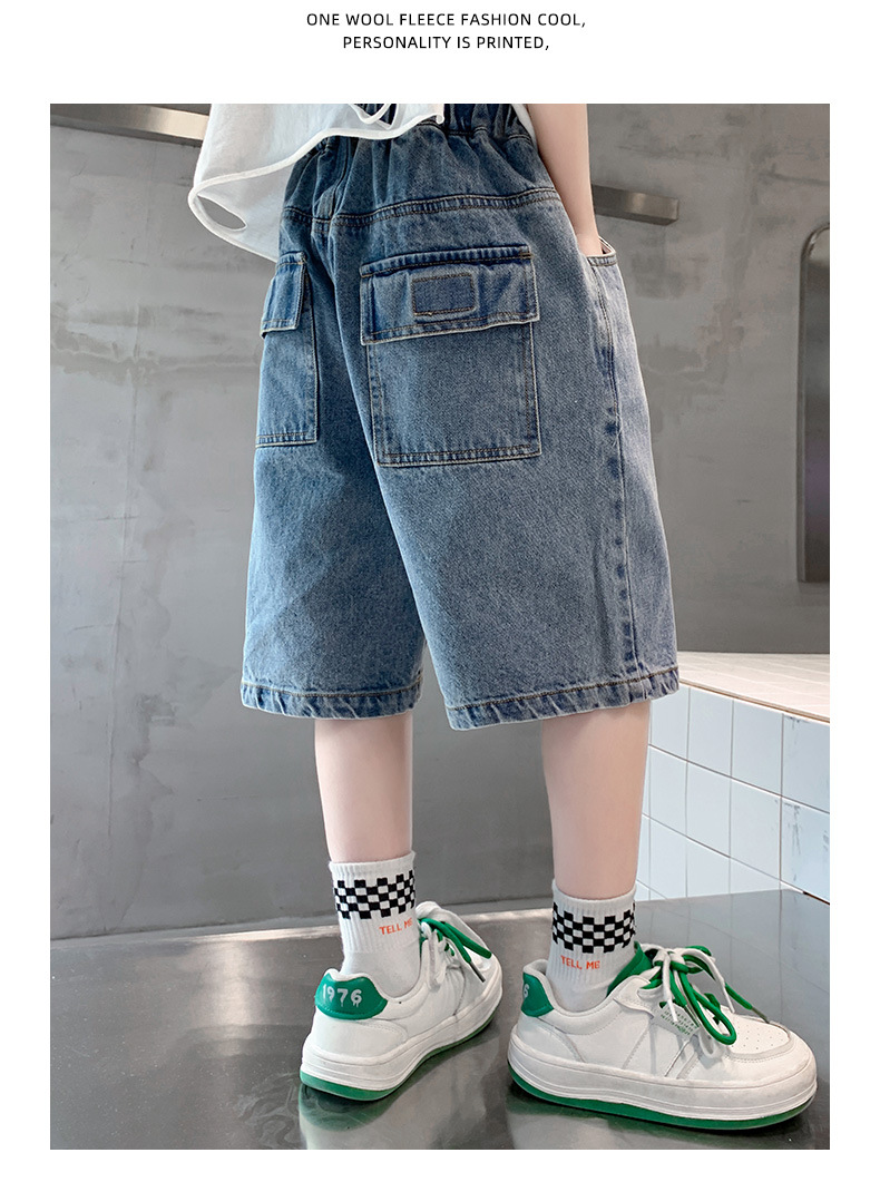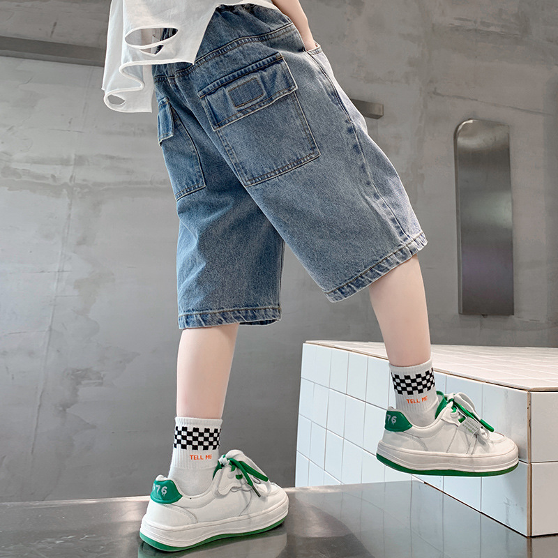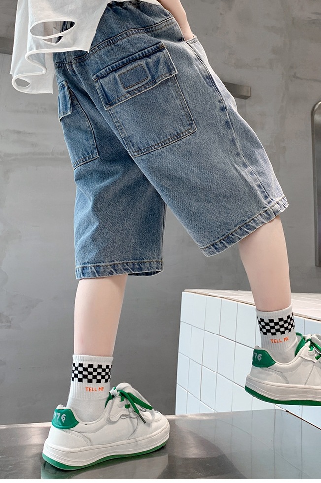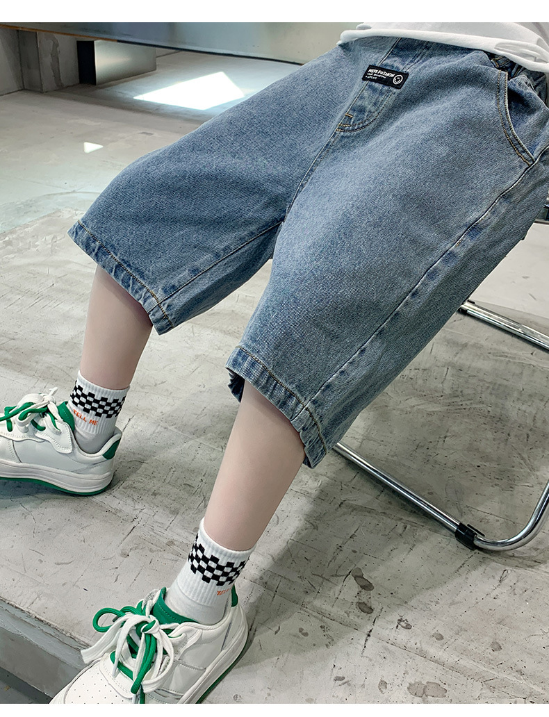 소년 데님 반바지 여름 얇은 2025 새로운 어린이 여름 바지 소년 중간 바지 느슨한 겉옷 유행과 멋진스토어 가기