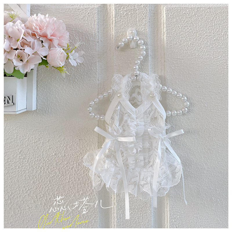 강아지 옷 몰타 여름 레이스 서스펜더 요크셔 화이트 거즈 스커트 작은 개 브이넥 보우 쿨스토어 가기