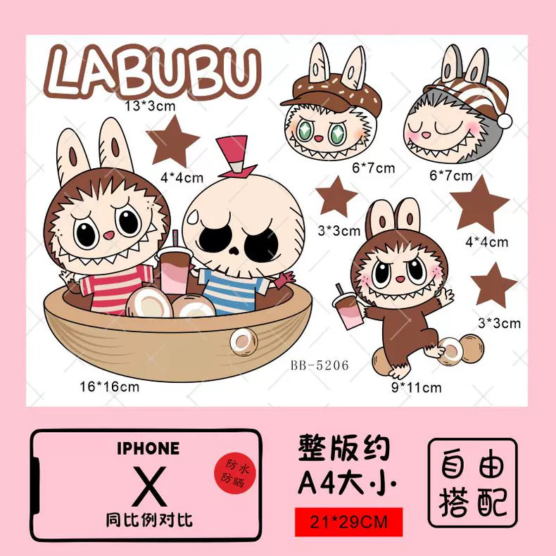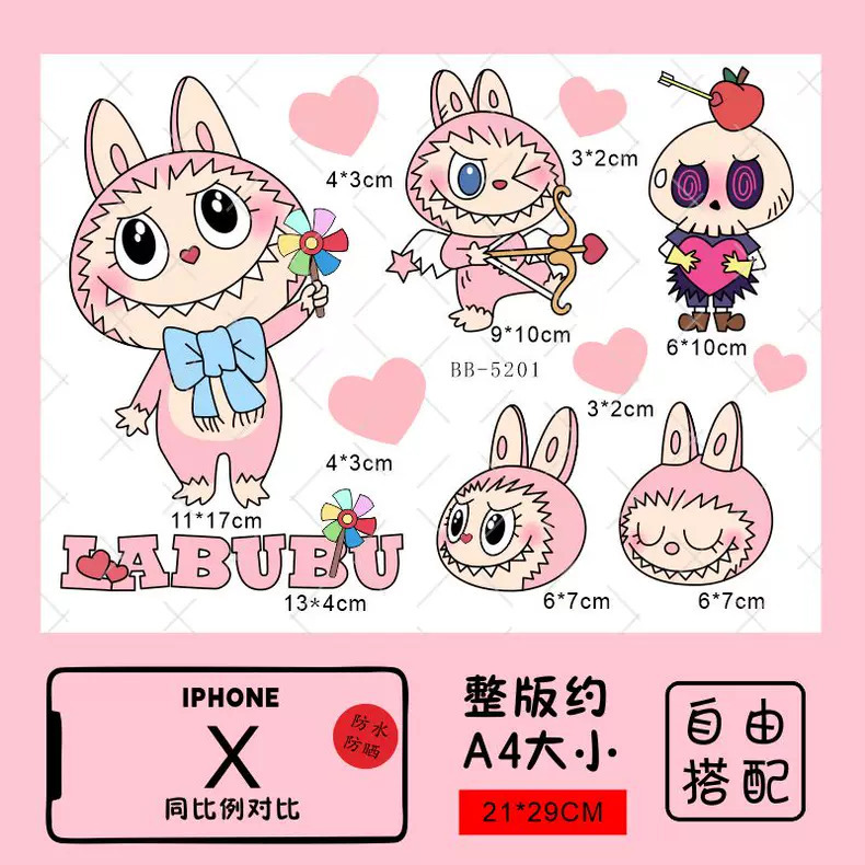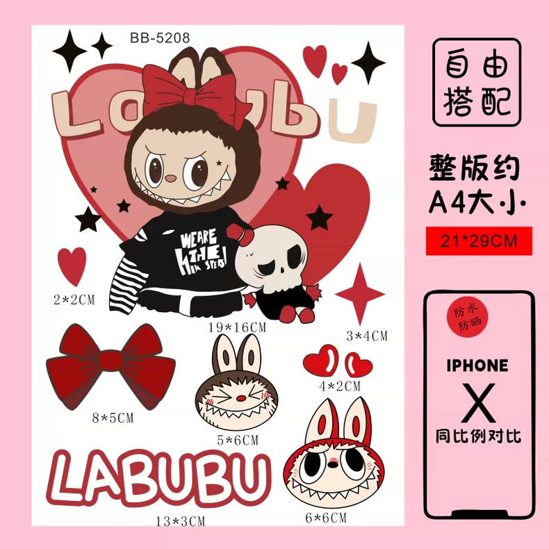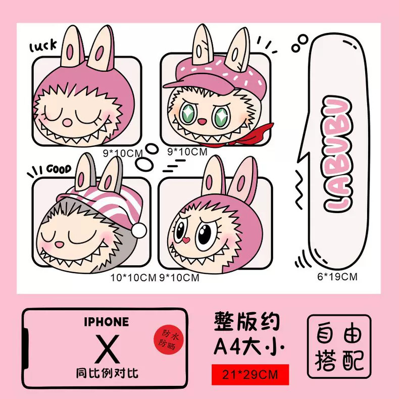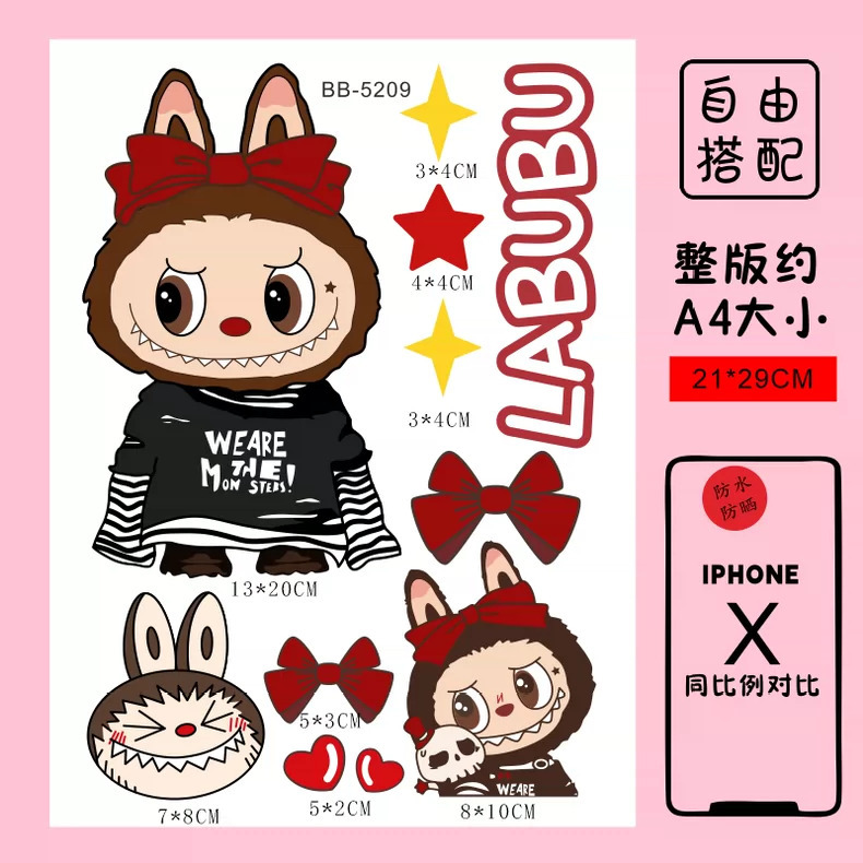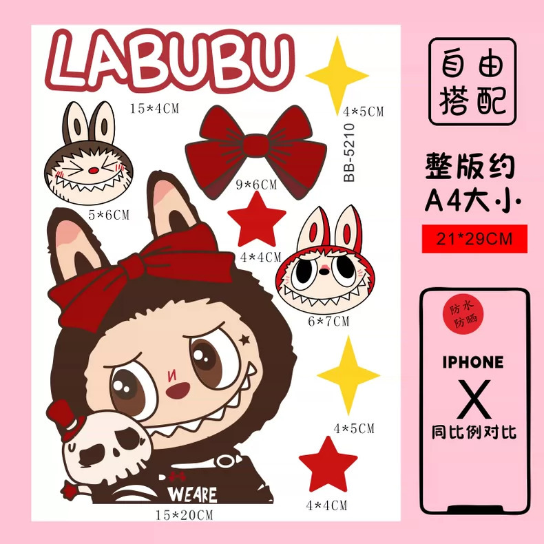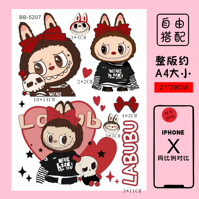 Labubu 만화 전기 자동차 오토바이 스티커 배터리 자동차 장식 방수 맞춤형 스티커 스크래치 커버 스티커