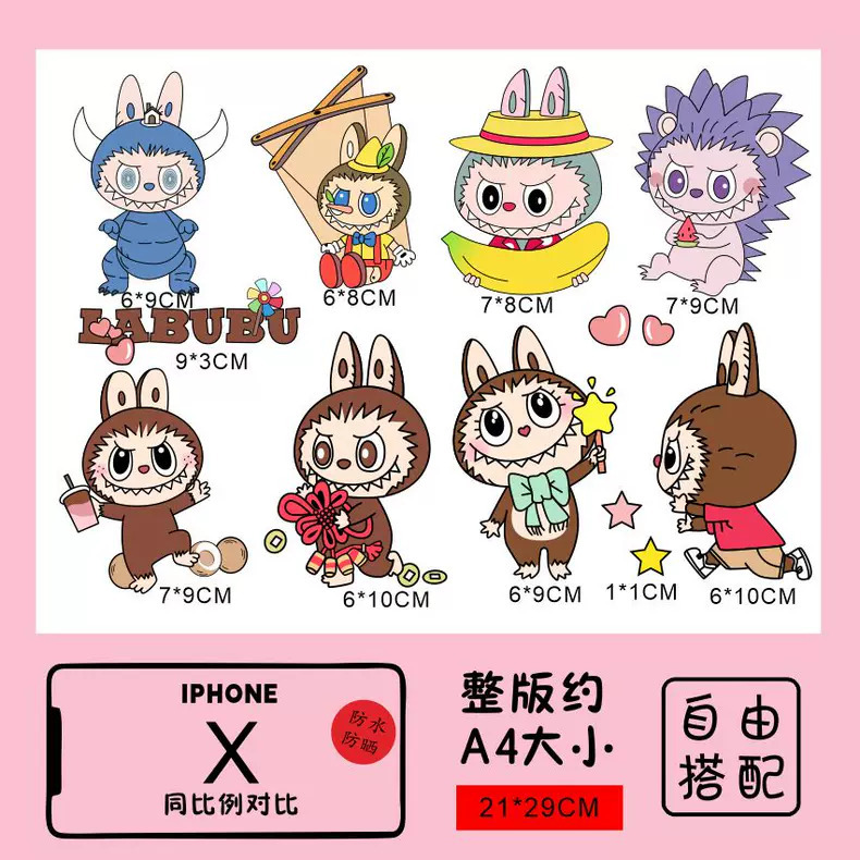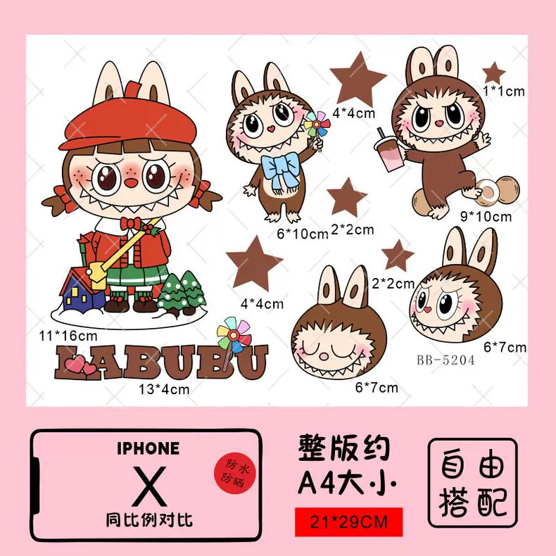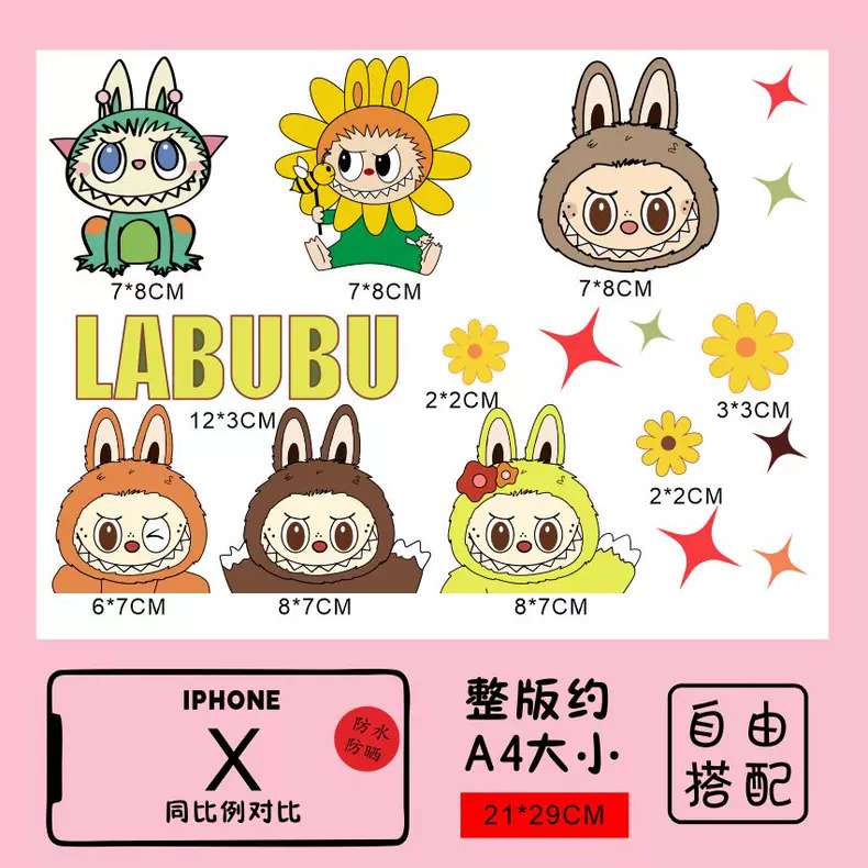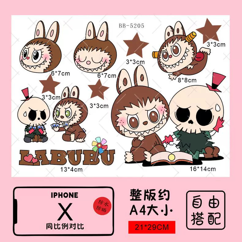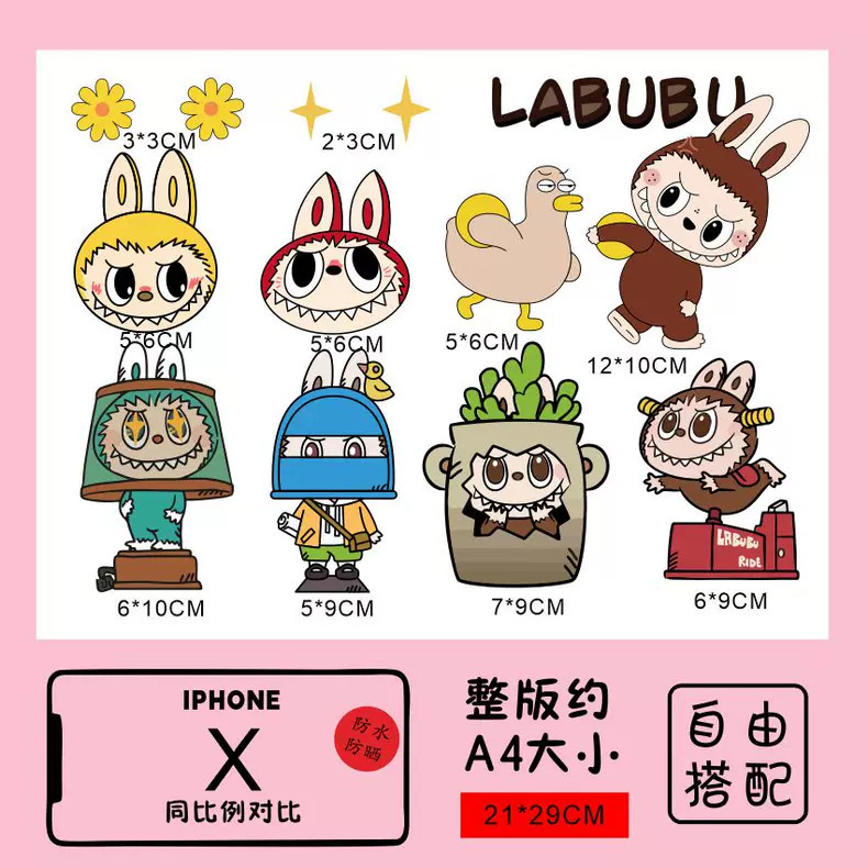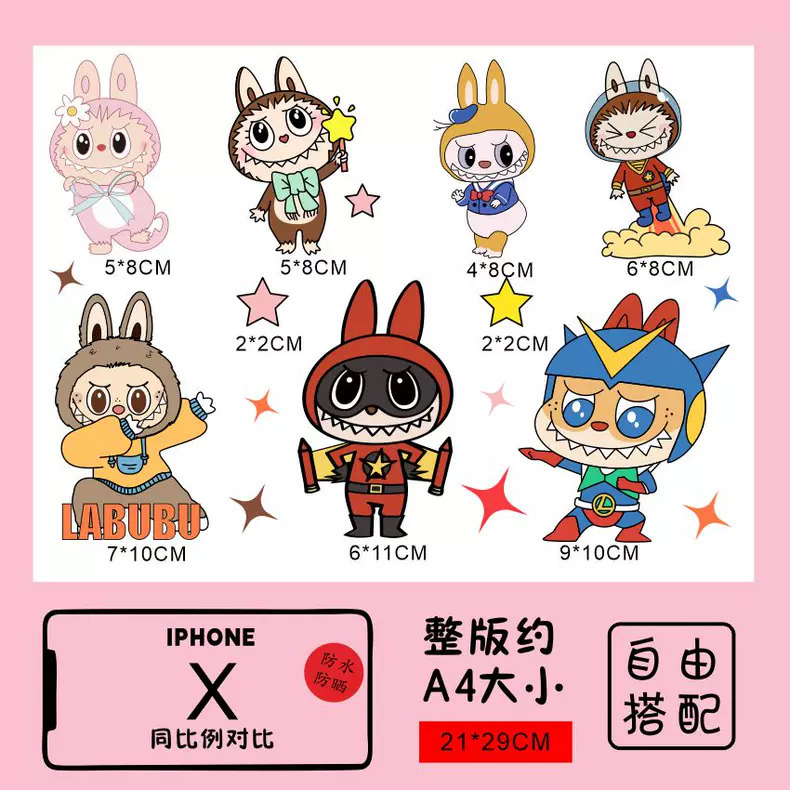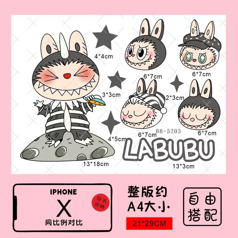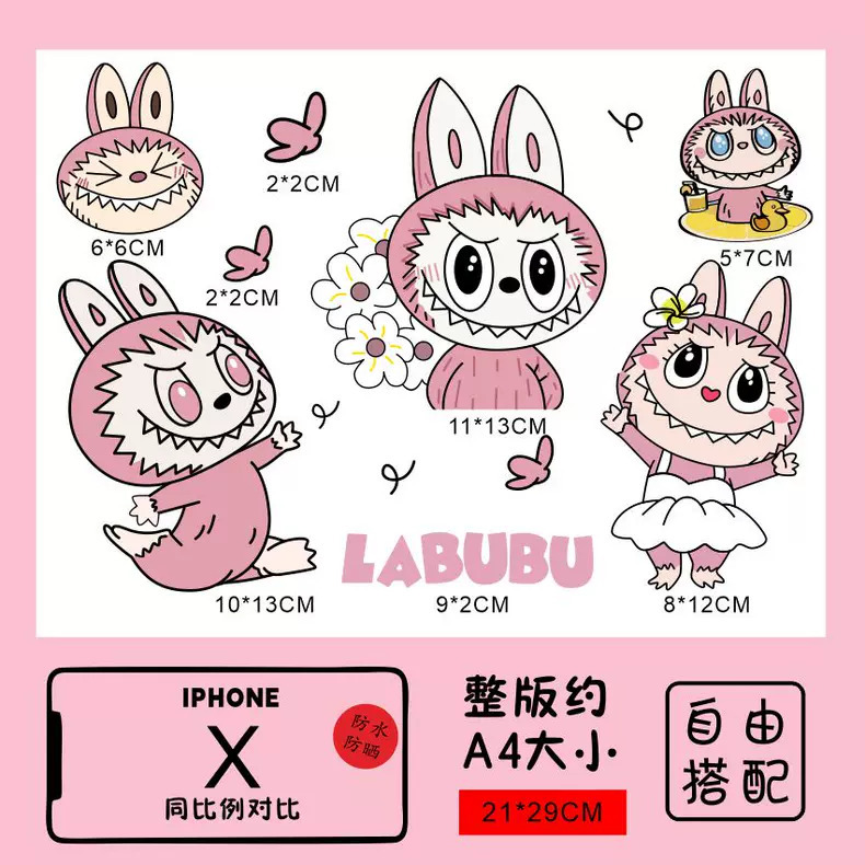 Labubu 만화 전기 자동차 오토바이 스티커 배터리 자동차 장식 방수 맞춤형 스티커 스크래치 커버 스티커