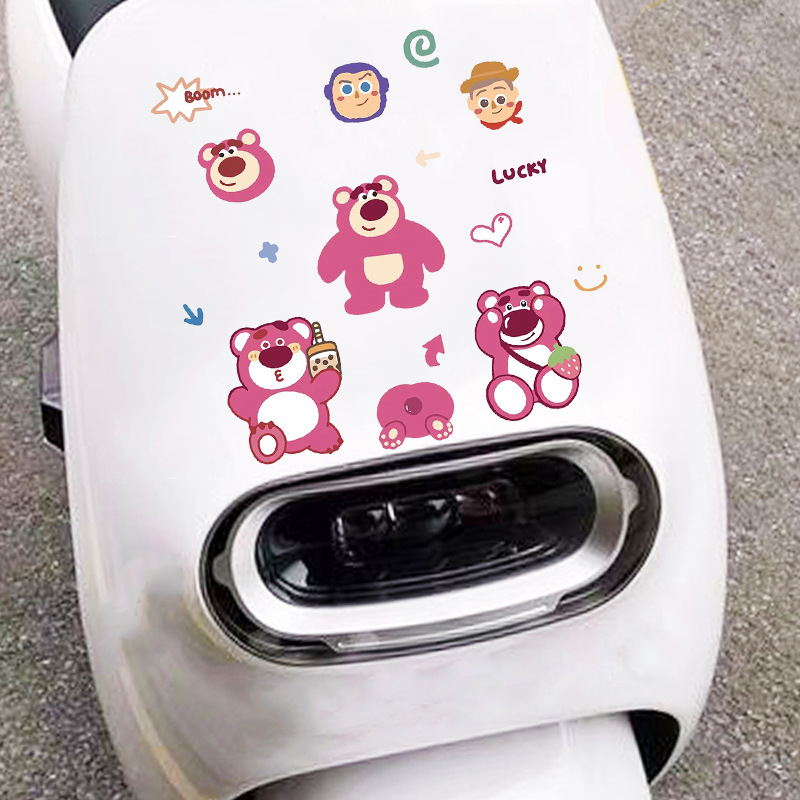 Labubu 만화 전기 자동차 오토바이 스티커 배터리 자동차 장식 방수 맞춤형 스티커 스크래치 커버 스티커스토어 가기