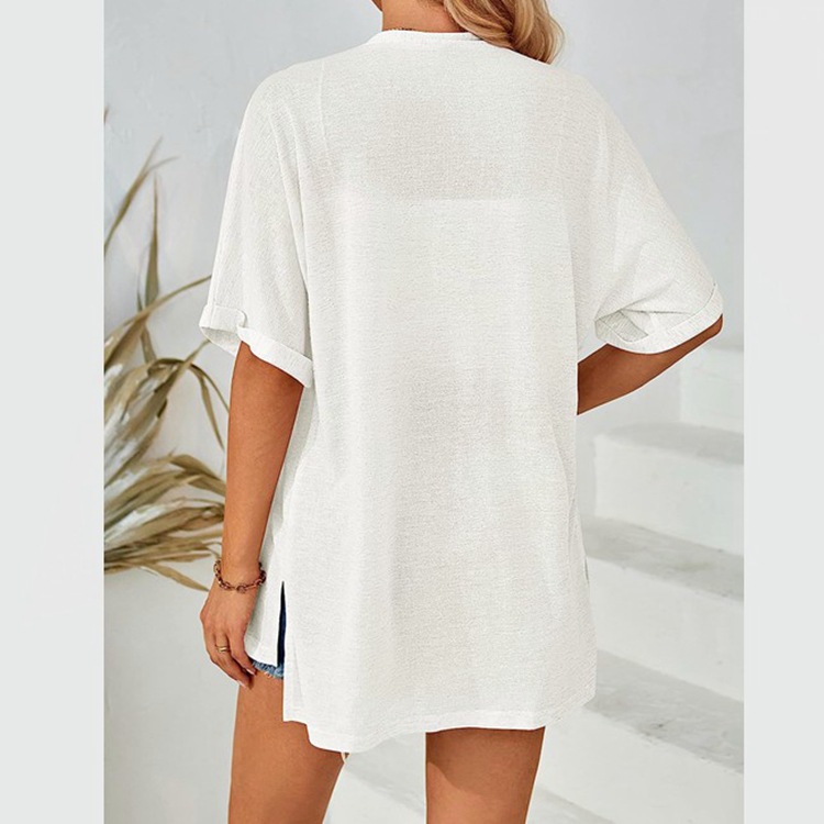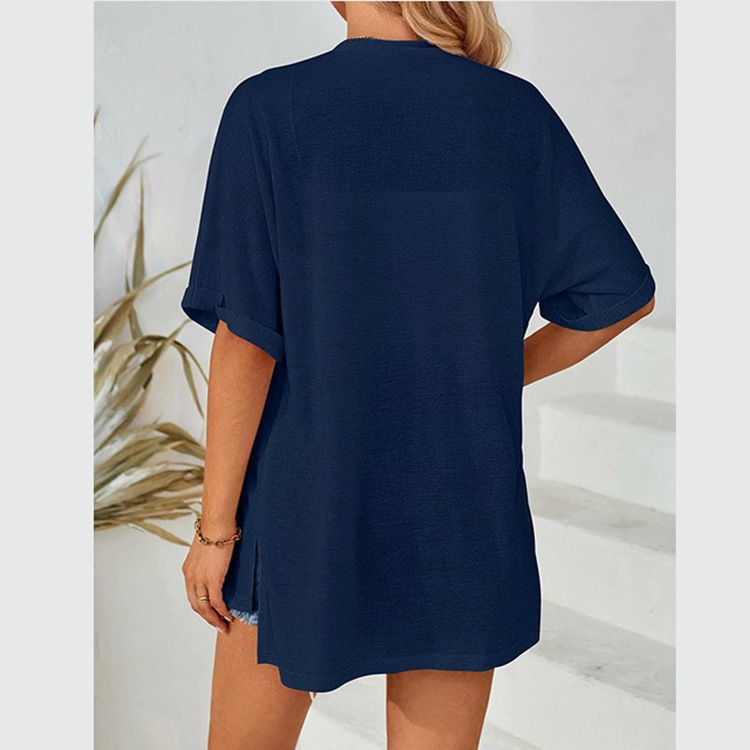 2023 유럽 및 미국 국경 간 Amazon AliExpress 새로운 여성 캐주얼 솔리드 컬러 블라우스 셔츠