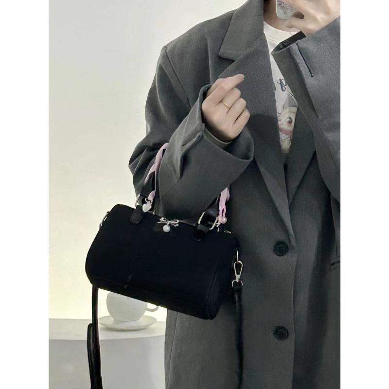 니치걸 하트 보우 핸드헬드 보스턴백, 하이엔드 필로우백, 활용도 높은 크로스바디 통근용 스몰 스퀘어백스토어 가기