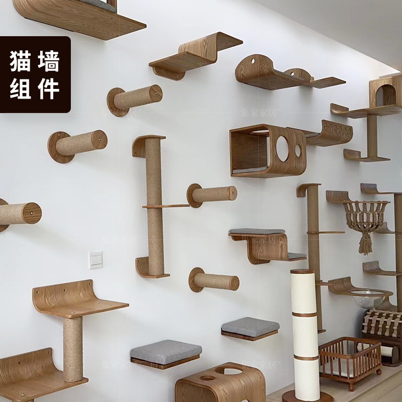 [고양이 벽 구성 요소] 여러 고양이가 있는 가족을 위한 원목 고양이 클라이밍 프레임, 고양이 둥지 벽, 공간을 차지하지 않는 점프 플랫폼, 클라이밍 기둥 및 사다리스토어 가기