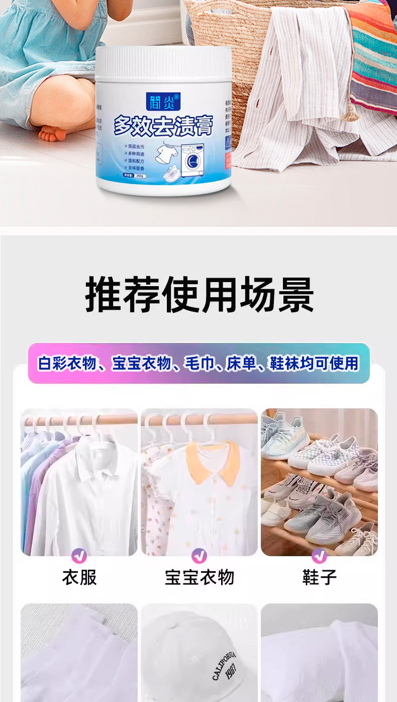 흰옷 세탁 및 오염 제거, 옷 및 신발, 흰색 신발, 흰색 옷 바닥, 기름때 세척을 위한 다목적 세탁 크림