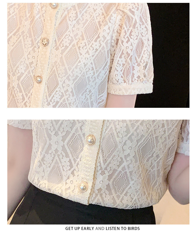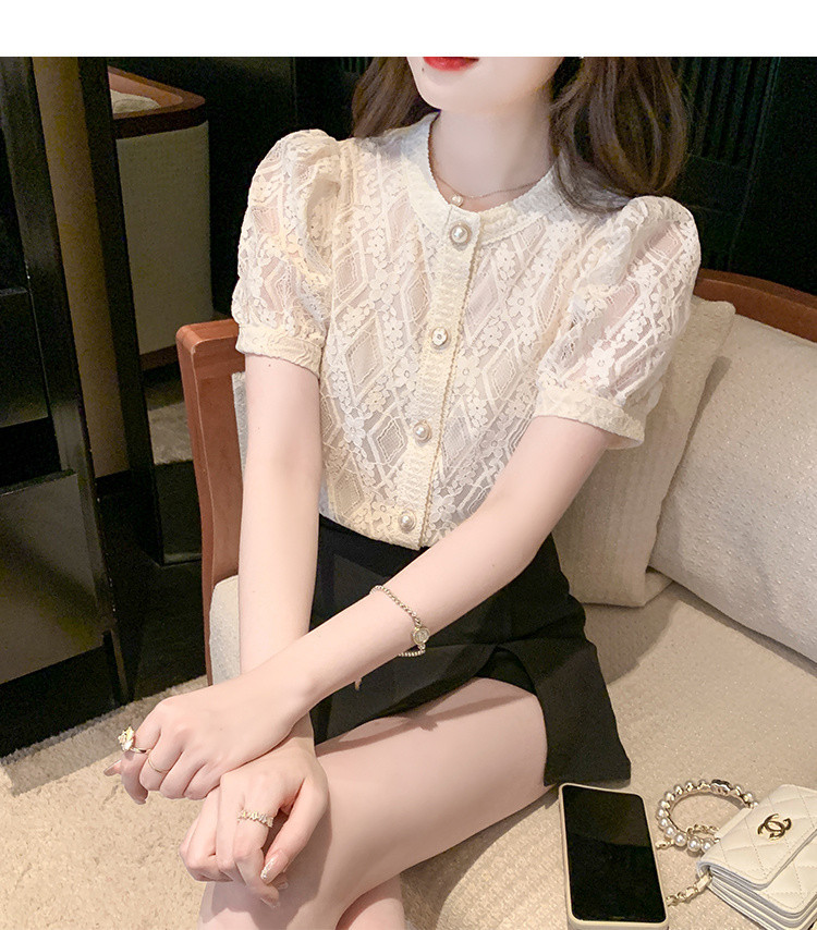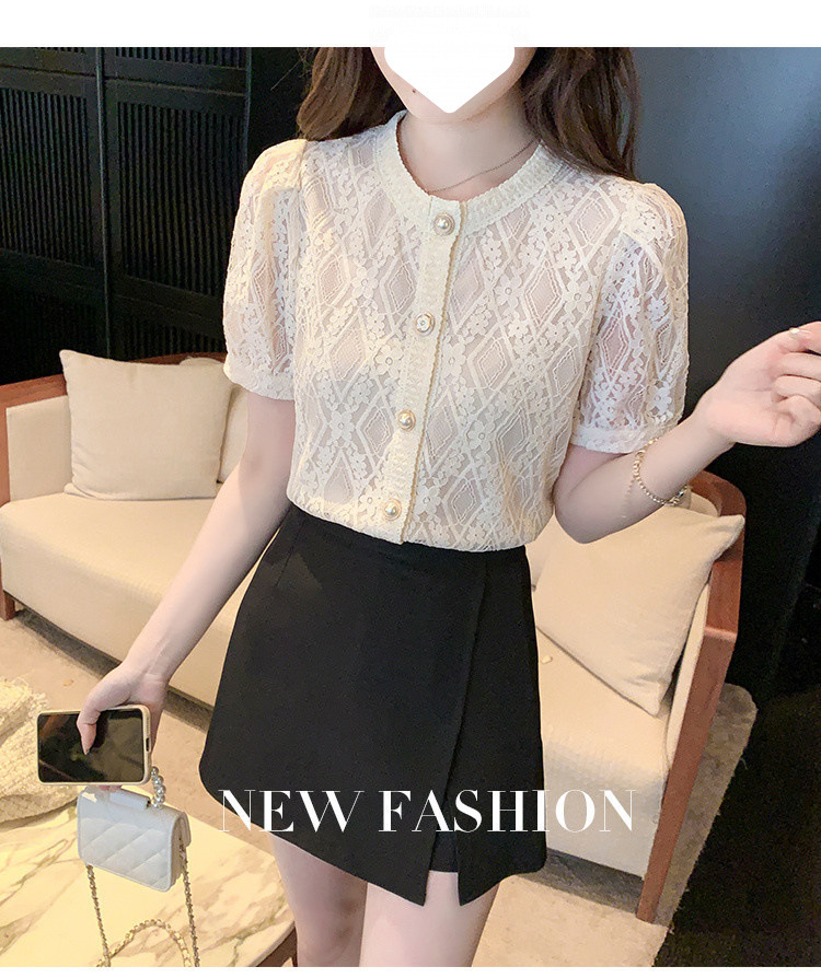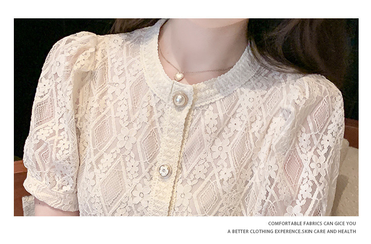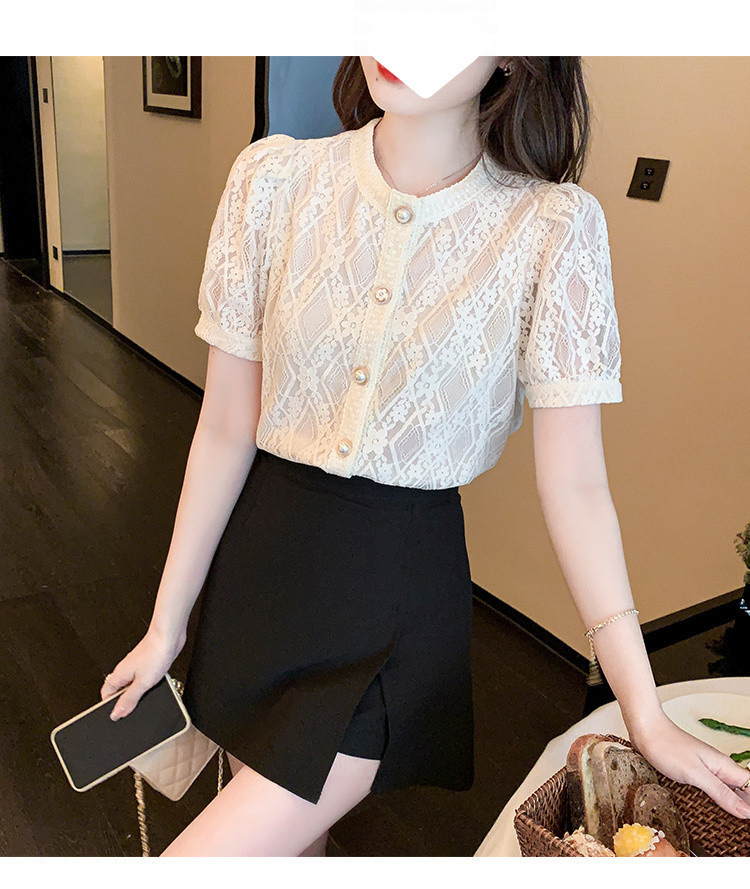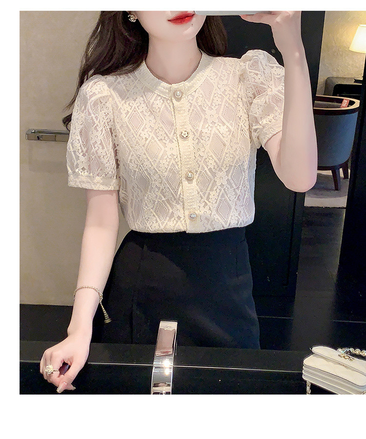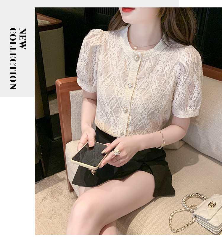 Q7N 여성용 서양식 레이스 쉬폰 셔츠, 여성스럽고 달콤한 라운드 넥 연령 감소 탑 2025 여름 새로운 스타일 다용도 슬리밍