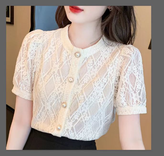 Q7N 여성용 서양식 레이스 쉬폰 셔츠, 여성스럽고 달콤한 라운드 넥 연령 감소 탑 2025 여름 새로운 스타일 다용도 슬리밍스토어 가기