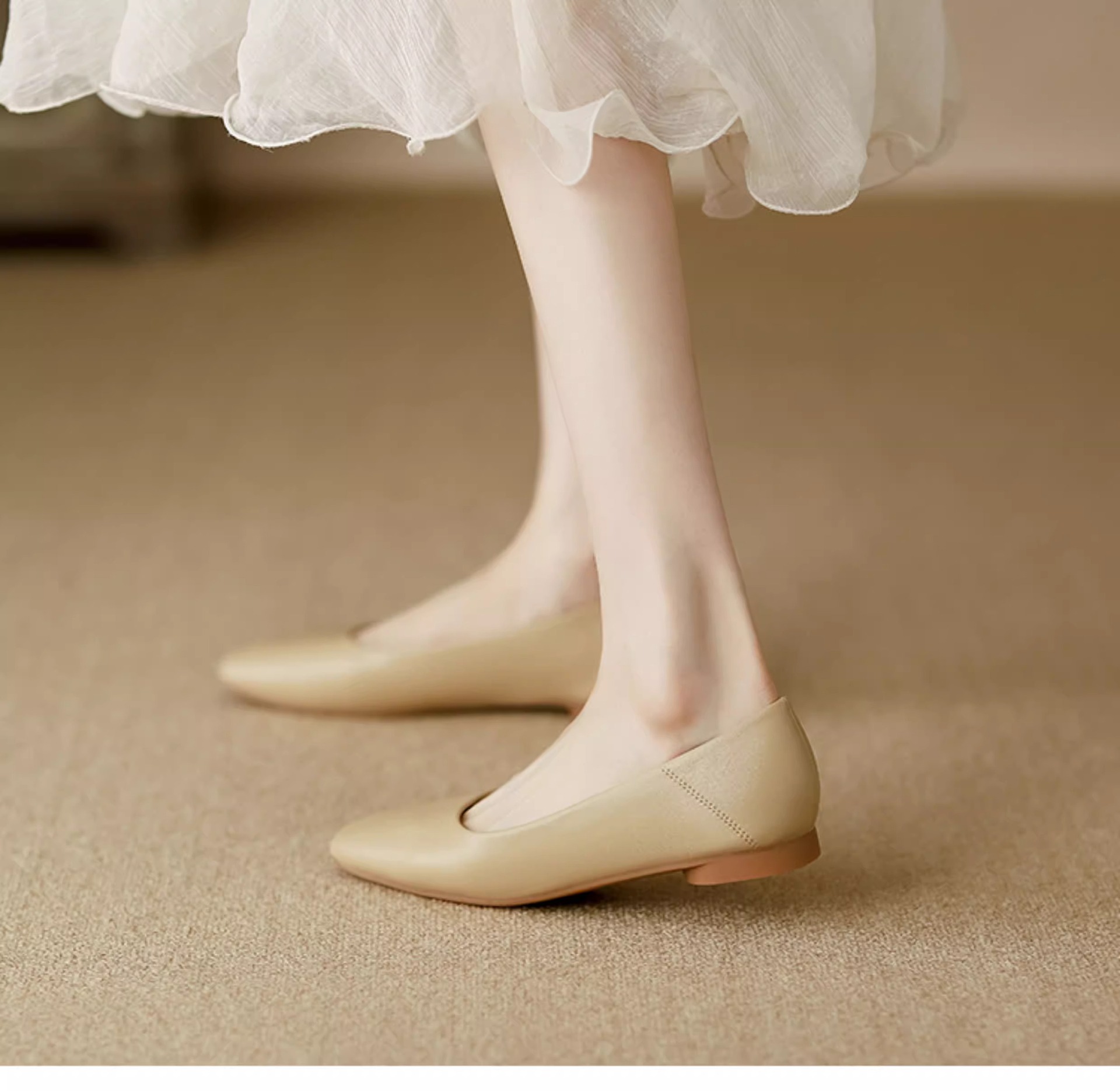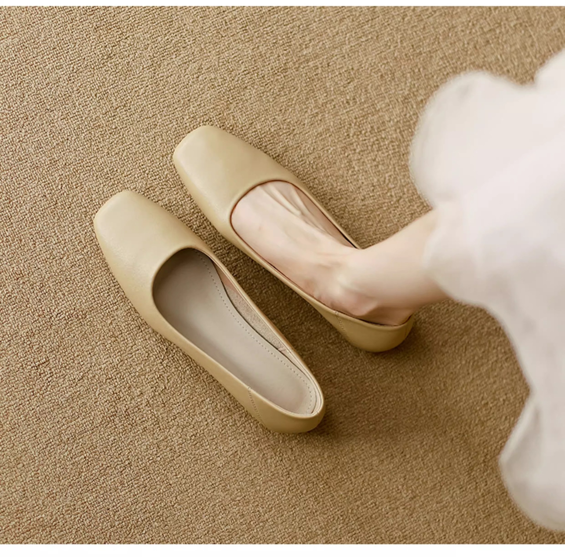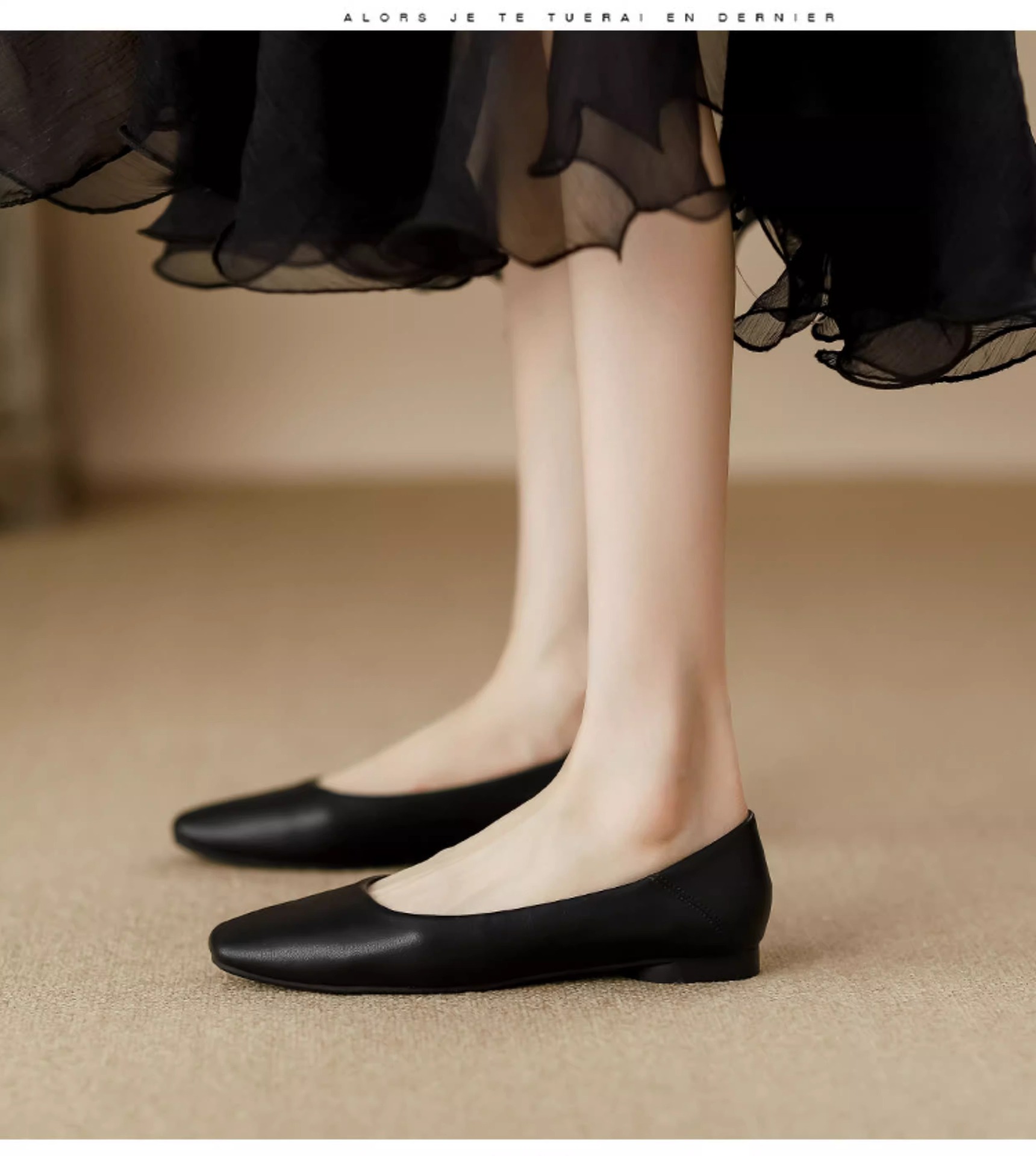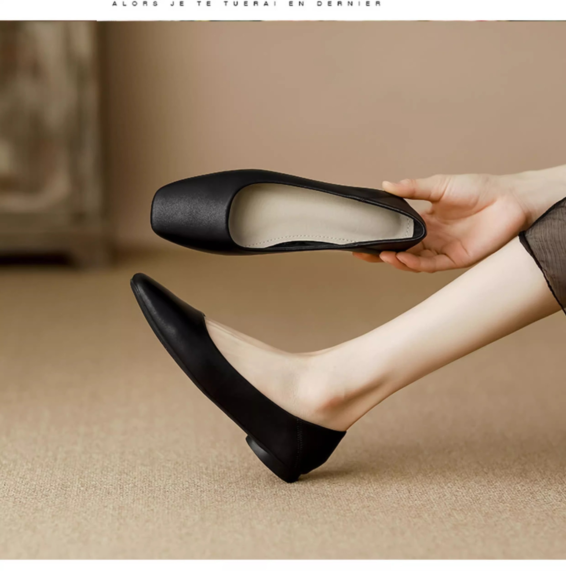 여성용 정품 가죽 할머니 신발 플랫 2025 새로운 프랑스 스타일 이브닝 스타일 얕은 입 스퀘어 토 신발 부드러운 가죽 부드러운 밑창 비니 신발스토어 가기