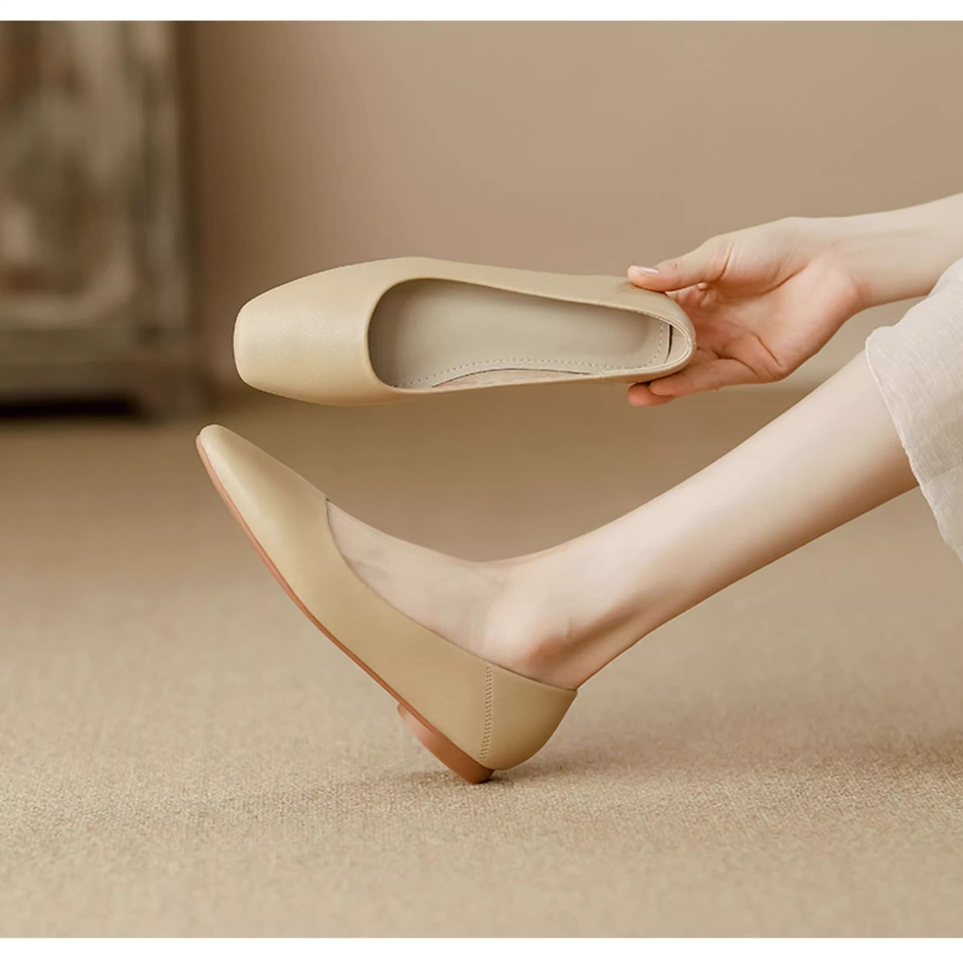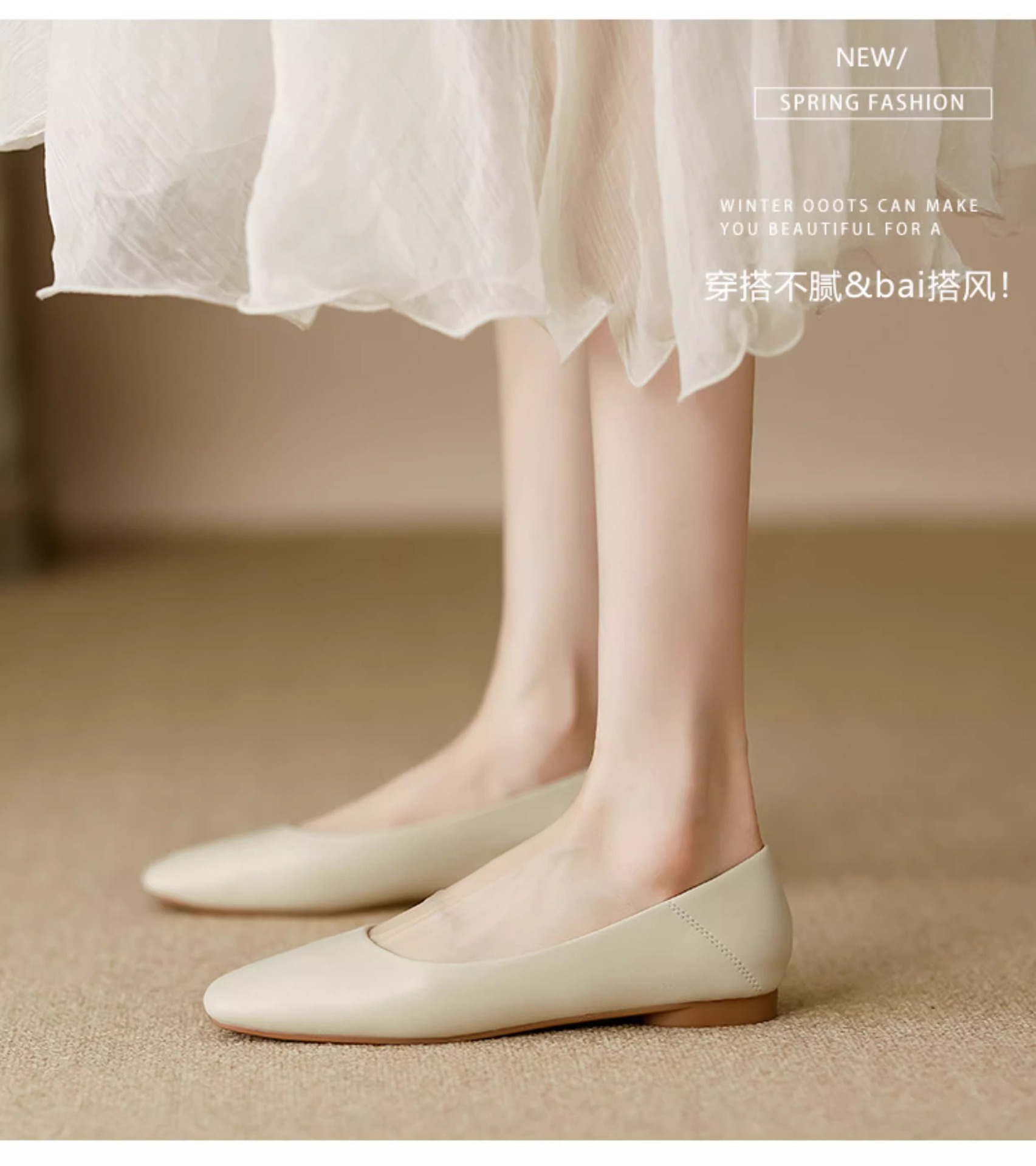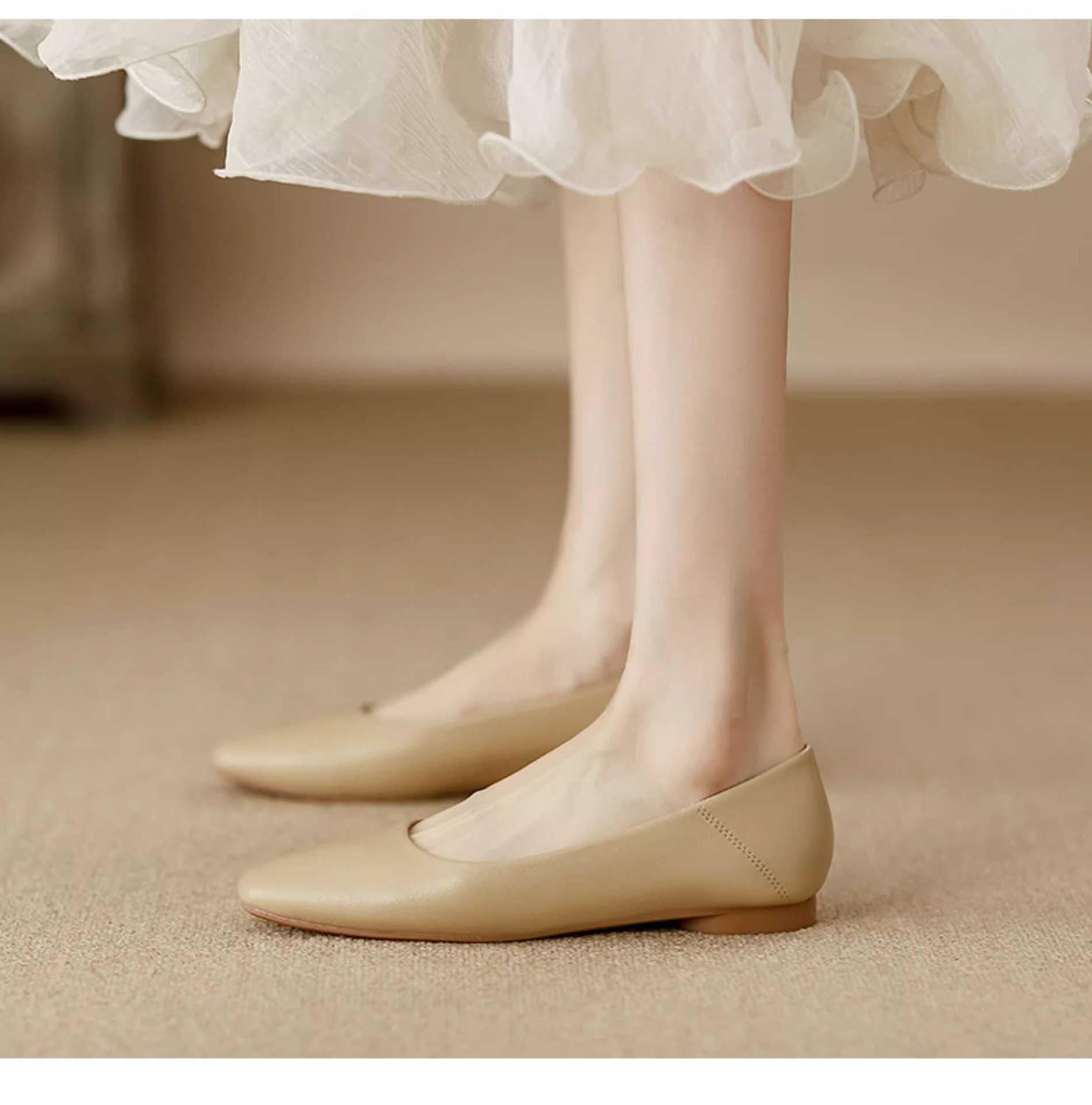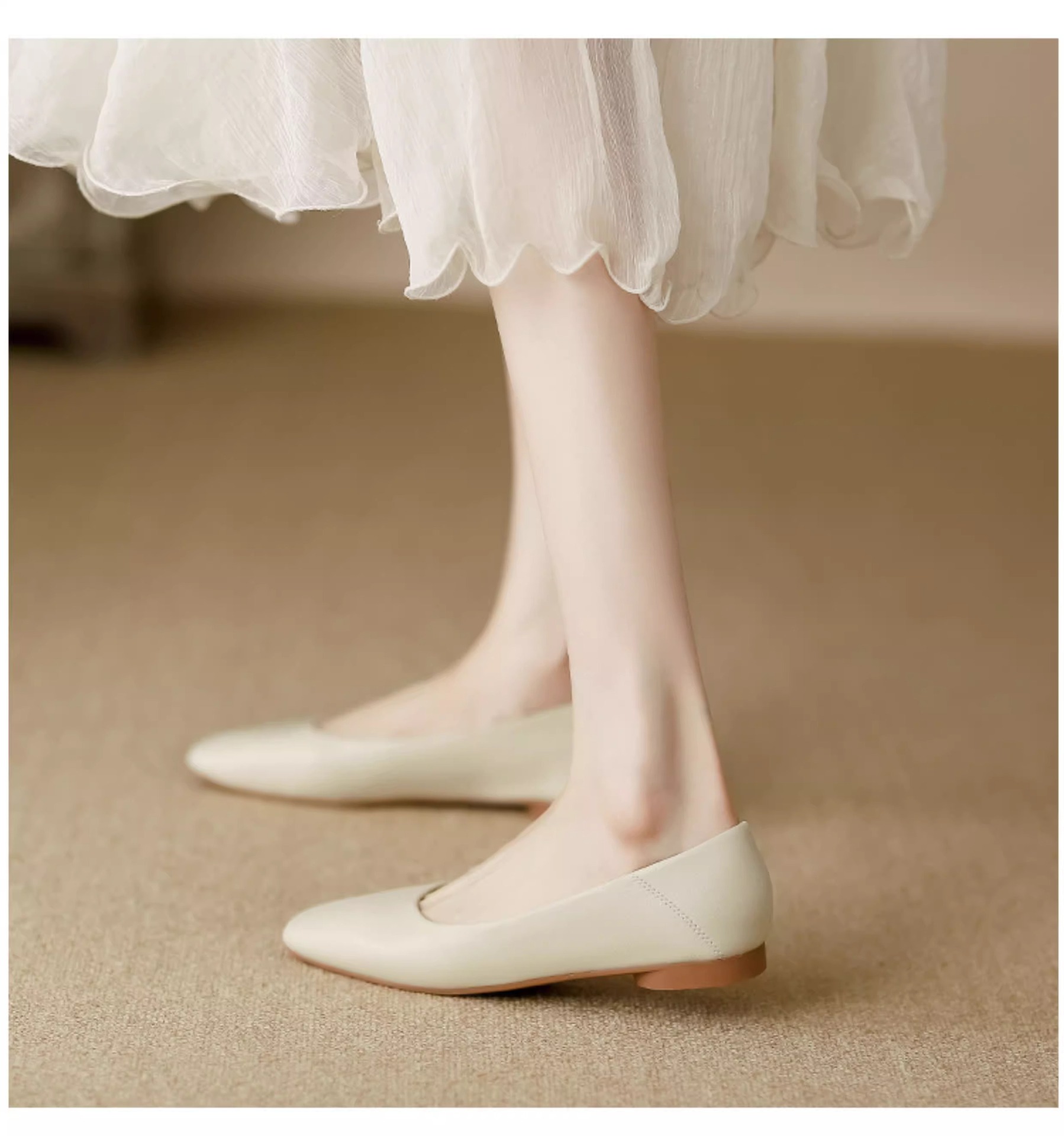 여성용 정품 가죽 할머니 신발 플랫 2025 새로운 프랑스 스타일 이브닝 스타일 얕은 입 스퀘어 토 신발 부드러운 가죽 부드러운 밑창 비니 신발스토어 가기