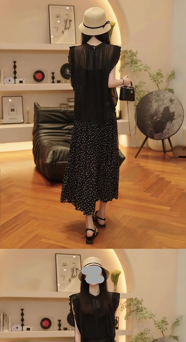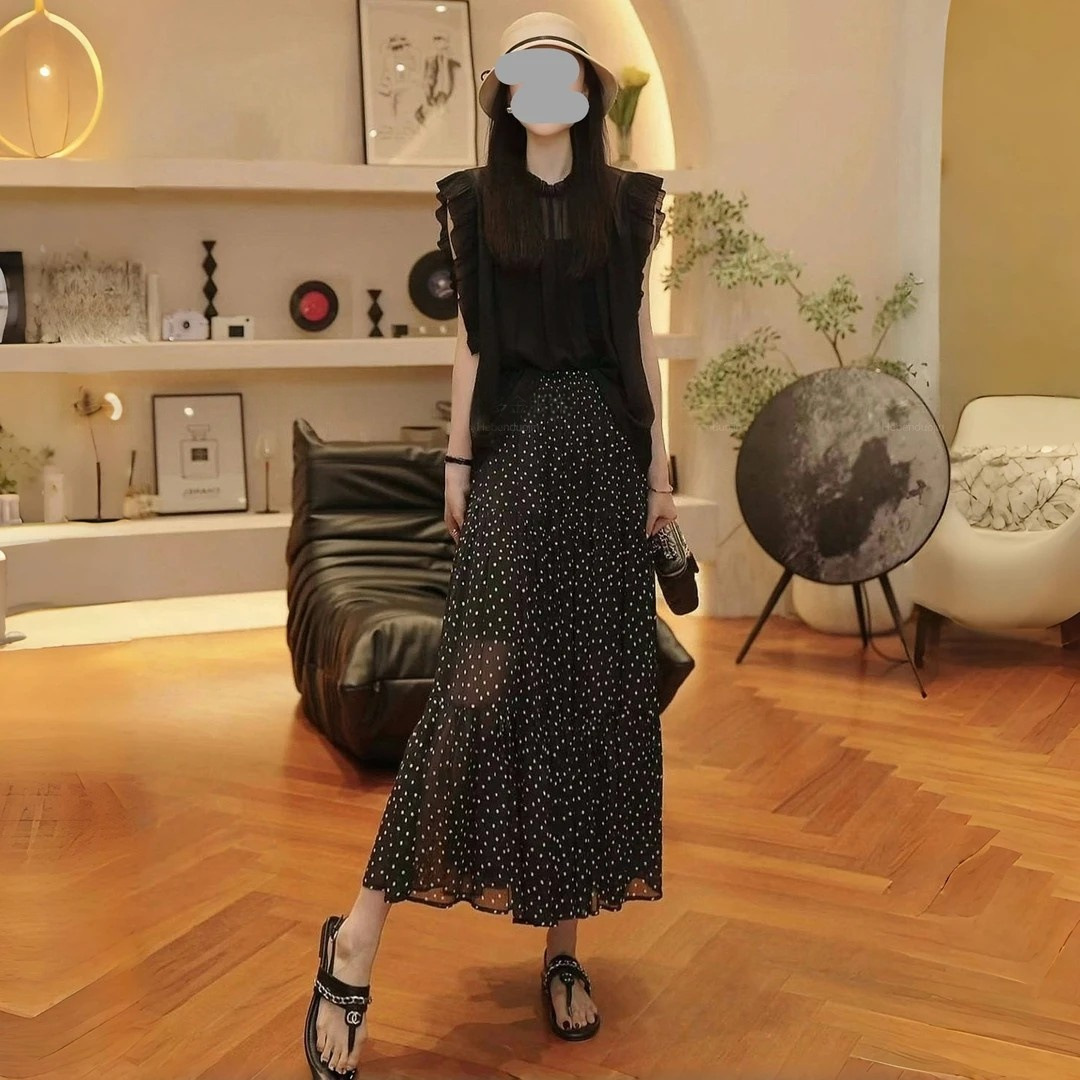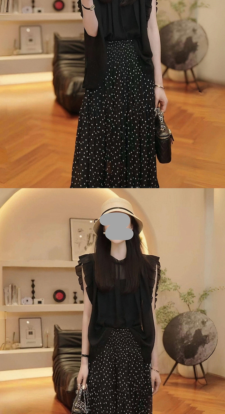 2025 여름 연령 감소 슬리밍 민소매 탑 통기성 블라우스 통근 다용도 폴카 도트 스커트 여성용 기질 슈트스토어 가기